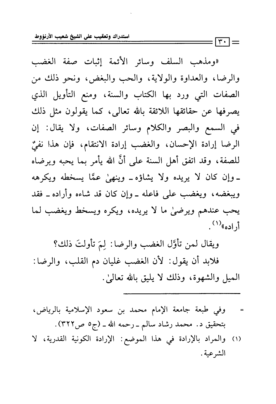 كتاب استدراك وتعقيب على الشيخ شعيب الأرنؤوط في تأويله بعض أحاديث الصفات