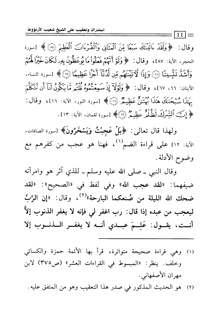 كتاب استدراك وتعقيب على الشيخ شعيب الأرنؤوط في تأويله بعض أحاديث الصفات