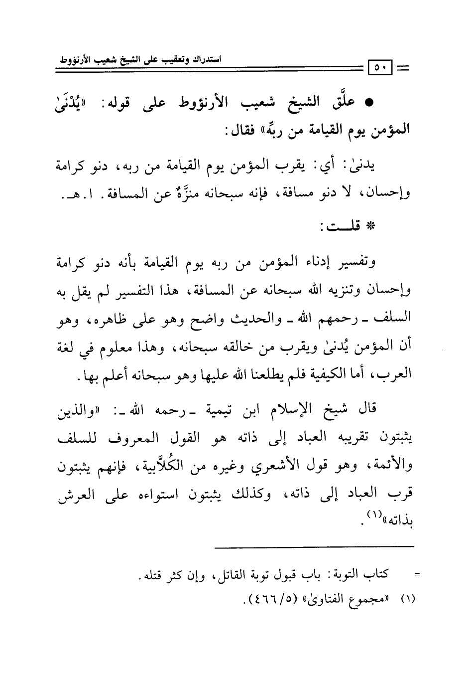 كتاب استدراك وتعقيب على الشيخ شعيب الأرنؤوط في تأويله بعض أحاديث الصفات