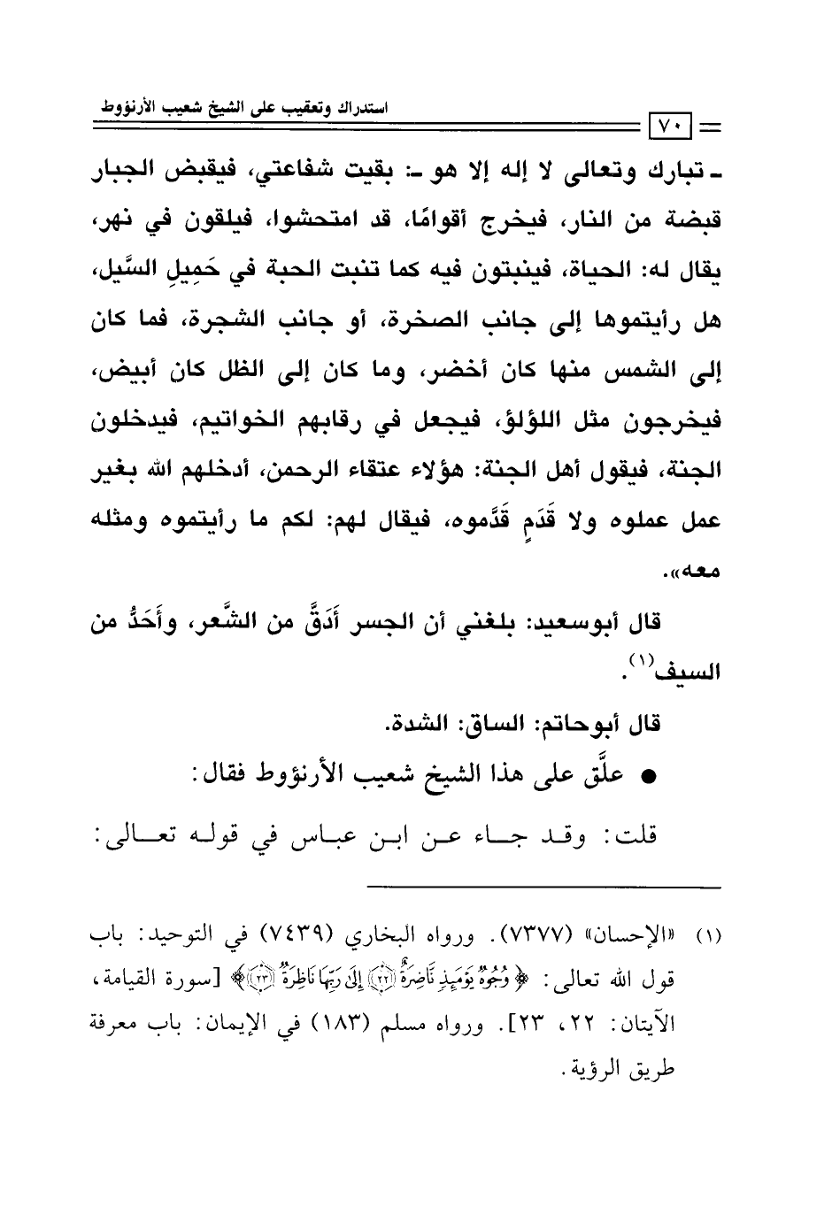 (¬1) "الإحسان" (7377). ورواه البخاري (7439) في التوحيد: باب قول الله تعالى: {وُجُوهٌ يَوْمَئِذٍ نَاضِرَةٌ (22) إِلَى رَبِّهَا نَاظِرَةٌ (23)} [سورة القيامة، الآيتان: 22، 23]. ورواه مسلم (183) في الإيمان: باب معرفة طريق الرؤية.