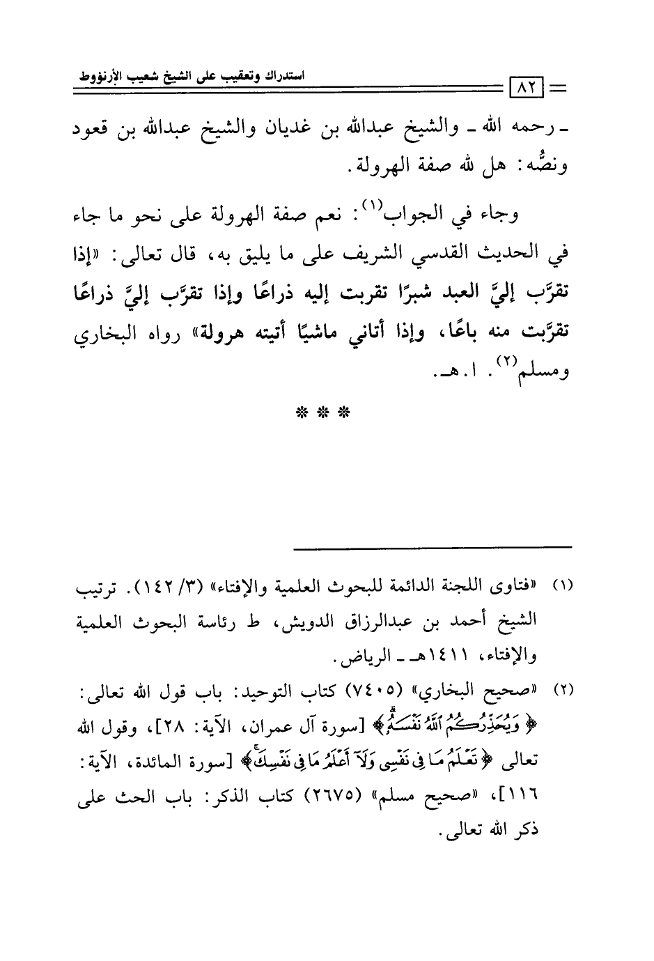 - رحمه الله - والشيخ عبد الله بن غديان والشيخ عبد الله بن قعود ونصُّه: هل لله صفة الهرولة.