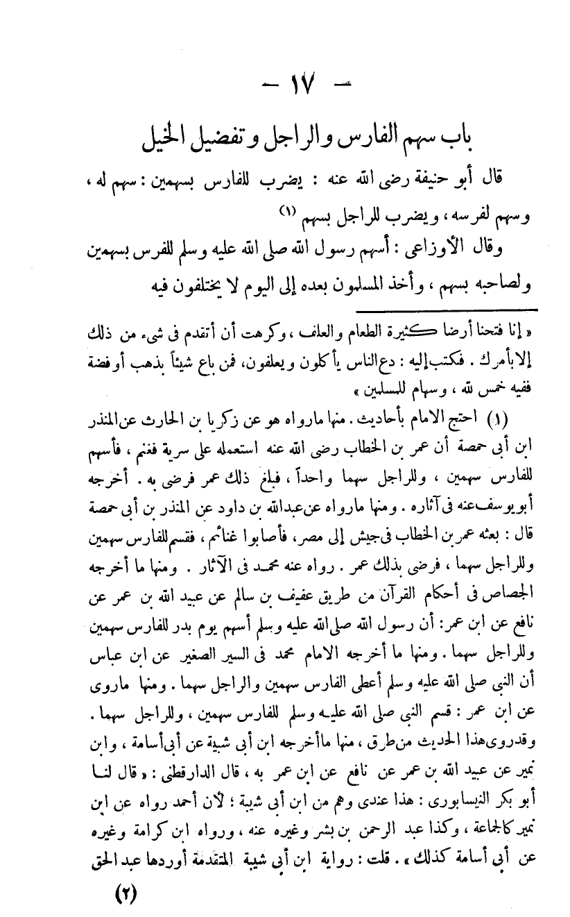 بَابُ سَهْمِ الْفَارِسِ وَالرَّاجِلِ وَتَفْضِيلِ الْخَيْلِ
