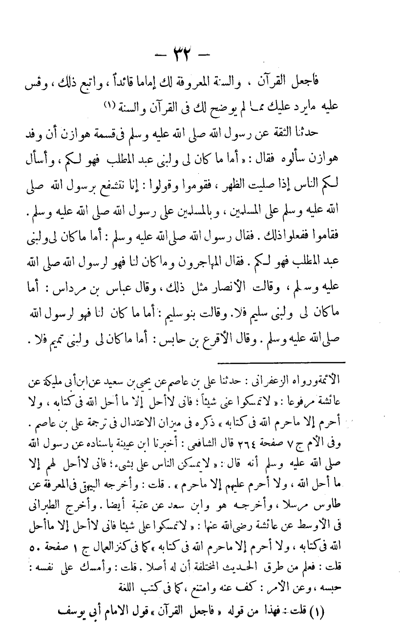 فَاجْعَلِ الْقُرْآنَ وَالسُّنَّةَ الْمَعْرُوفَةَ لَكَ إِمَامًا قَائِدًا وَاتَّبِعْ ذَلِكَ وَقِسْ عَلَيْهِ مَا يَرِدُ عَلَيْكَ مِمَّا لَمْ يُوَضَّحْ لَكَ فِي الْقُرْآنِ وَالسُّنَّةِ