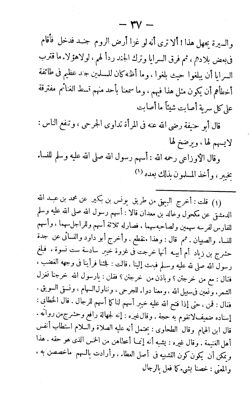 وَالسِّيرَةَ يَجْهَلُ هَذَا أَلَا تَرَى أَنَّهُ لَوْ غَزَا أَرْضَ الرُّومِ جُنْدٌ فَدَخَلَ فَأَقَامَ فِي بَعْضِ بِلَادِهِمْ ثُمَّ فَرَّقَ السَّرَايَا وَتَرَكَ الْجُنْدَ رِدْأً لَهُمْ لَوْلَا هَؤُلَاءِ مَا قترب السَّرَايَا أَنْ يَبْلُغُوا حَيْثُ بَلَغُوا وَمَا أَظُنُّهُ كَانَ لِلْمُسْلِمِينَ جُنْدٌ عَظِيمٌ فِي طَائِفَةٍ أَخْطَأَهُمْ أَنْ يَكُونَ مِثْلُ هَذَا فِيهِمْ وَمَا سمعنَا أحد مِنْهُمْ قَسَّطَ الْغَنَائِمَ مُفْتَرِقَةً عَلَى كُلِّ سَرِيَّةٍ أَصَابَتْ شَيْئًا مَا أَصَابَتْ