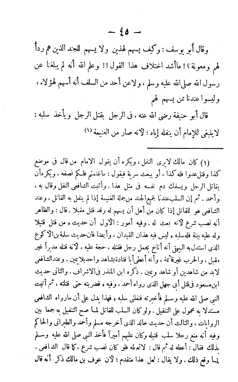 قَالَ أَبُو حَنِيفَةَ رَضِيَ اللَّهُ عَنْهُ فِي الرَّجُلِ يَقْتُلُ الرَّجُلَ وَيَأْخُذُ سَلْبَهُ لَا يَنْبَغِي لِلْإِمَامِ أَنْ يُنْفِلَهُ إِيَّاهُ لِأَنَّهُ صَارَ مِنَ الْغَنِيمَة