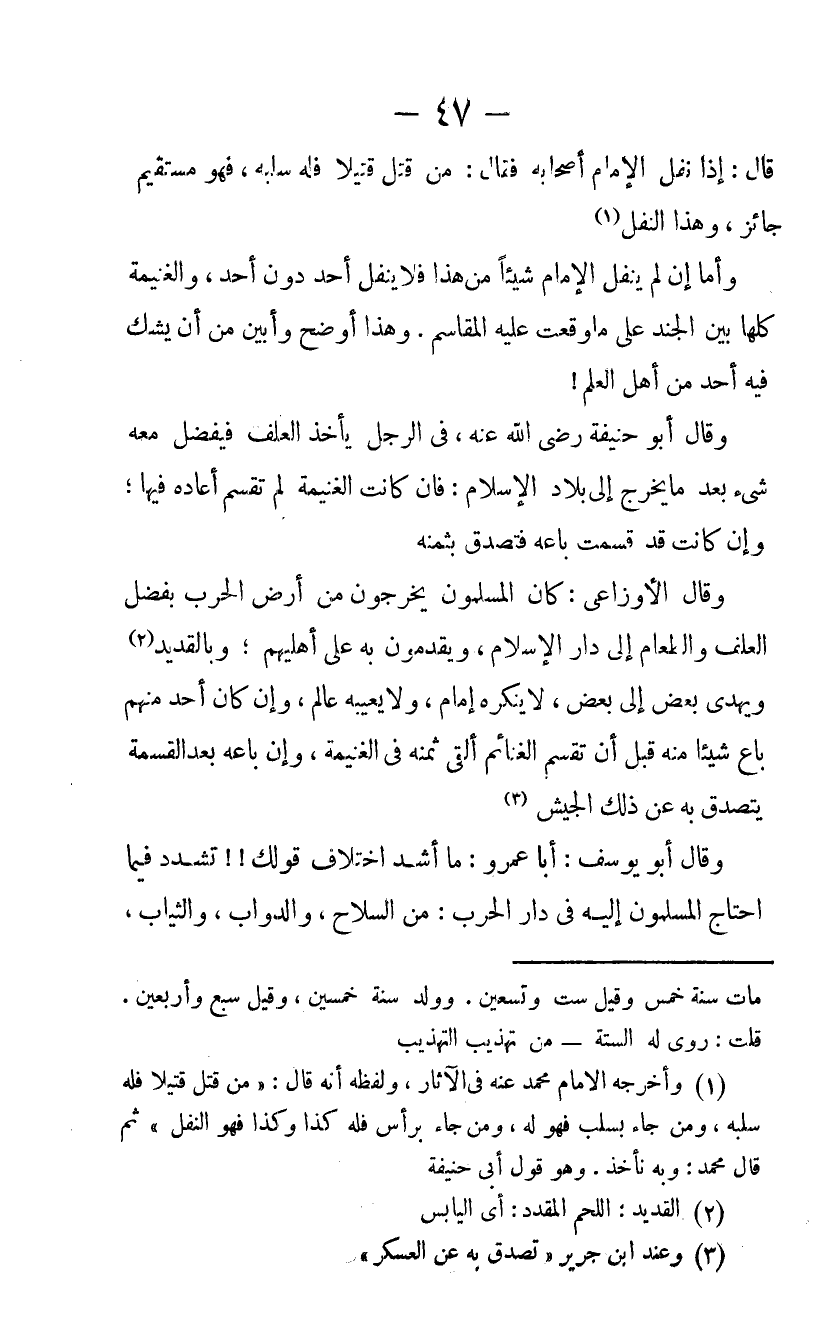 قَالَ إِذَا نَفَلَ الْإِمَامُ أَصْحَابَهُ فَقَالَ مَنْ قَتَلَ قَتِيلا فَلَهُ سَلْبُهُ فَهُوَ مُسْتَقِيمٌ جَائِزٌ وَهَذَا النَّفْلُ
