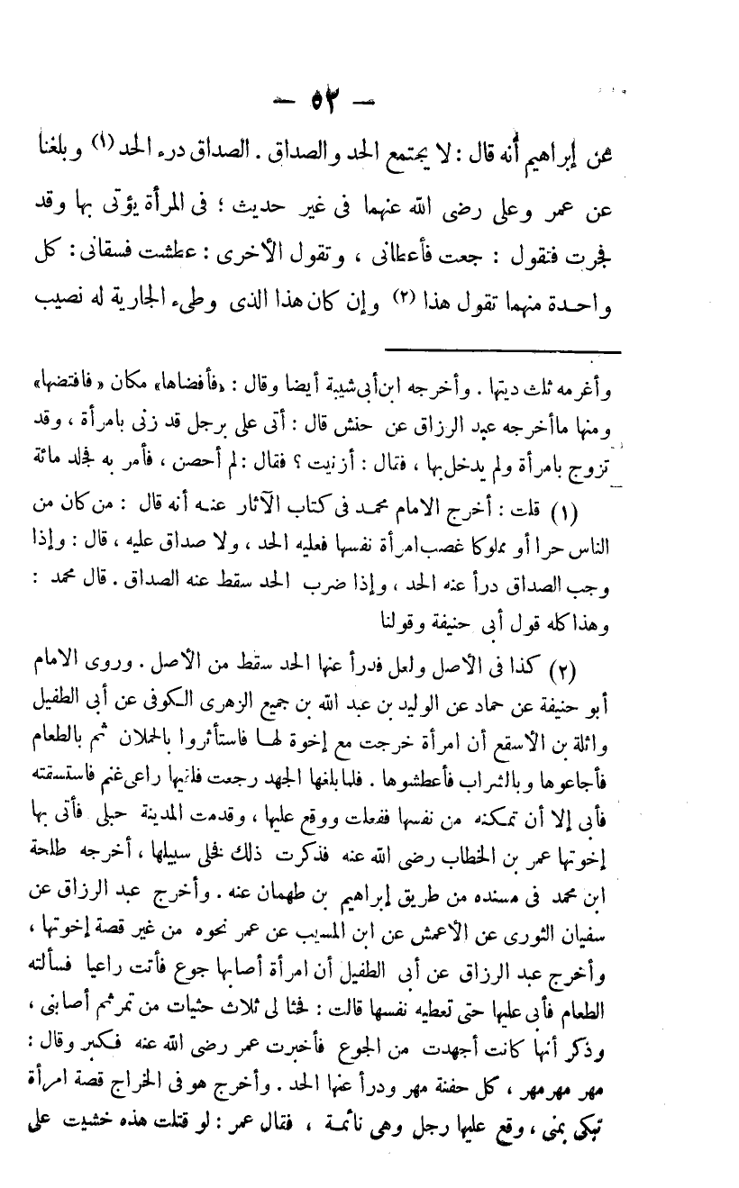 عَنْ إِبْرَاهِيمَ أَنَّهُ قَالَ لَا يجْتَمع الْحَد وَالصَّدَاق دَرْءُ الْحَدِّ وَبَلَغَنَا عَنْ عُمَرَ وَعَلِيٍّ رَضِيَ اللَّهُ عَنْهُمَا فِي غَيْرِ حَدِيثٍ فِي الْمَرْأَةِ يُؤْتَى بِهَا وَقَدْ فَجَرَتْ فَتَقُولُ جُعْتُ فَأَعْطَانِي وَتَقُولُ الْأُخْرَى عَطِشْتُ فَسَقَانِي كَلُّ وَاحِدَةٍ مِنْهُمَا تَقُولُ هَذَا وَإِنْ كَانَ هَذَا الَّذِي وَطِئَ الْجَارِيَة لَهُ نصيب