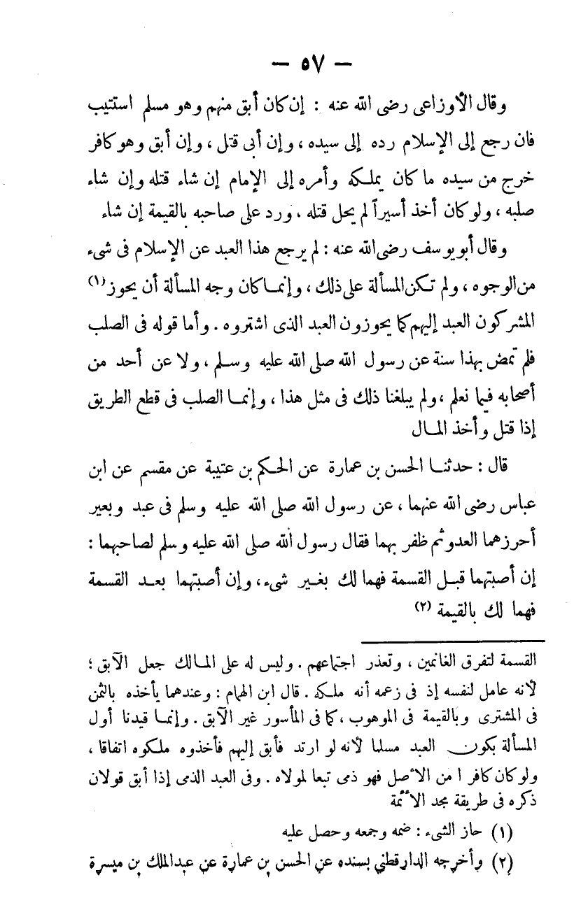 وَقَالَ أَبُو يُوسُفَ رَضِيَ اللَّهُ عَنْهُ لَمْ يَرْجِعْ هَذَا الْعَبْدُ عَنِ الْإِسْلَامِ فِي شَيْءٍ مِنَ الْوُجُوهِ وَلَمْ تَكُنِ الْمَسْأَلَةُ عَلَى ذَلِكَ وَإِنَّمَا كَانَ وَجْهُ الْمَسْأَلَةِ أَنْ يجوز الْمُشْركُونَ الْعَبْدَ الَّذِي اشْتَرَوْهُ وَأَمَّا قَوْلُهُ فِي الصَّلْبِ فَلَمْ تَمْضِ بِهَذَا سُنَّةٌ عَنْ رَسُولِ اللَّهِ صَلَّى اللَّهُ عَلَيْهِ وَسَلَّمَ وَلَا عَنْ أَحَدٍ مِنْ أَصْحَابِهِ فِيمَا نَعْلَمُ وَلَمْ يَبْلُغْنَا ذَلِكَ فِي مِثْلِ هَذَا وَإِنَّمَا الصَّلْبُ فِي قَطْعِ الطَّرِيقِ إِذَا قَتَلَ وَأَخَذَ الْمَالَ