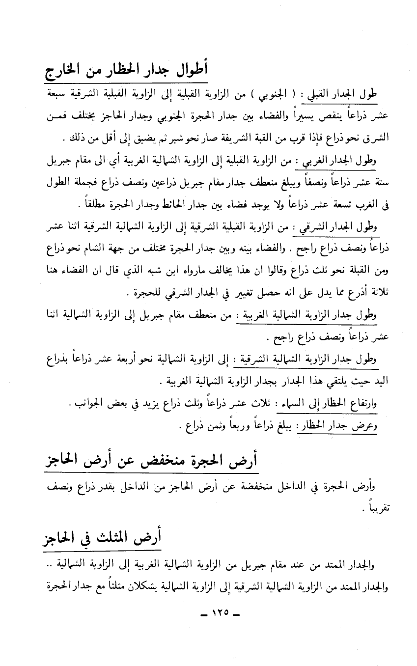 وأرض الحجرة في الداخل منخفضة عن أرض الحاجز من الداخل بقدر ذراع ونصف تقريباً.