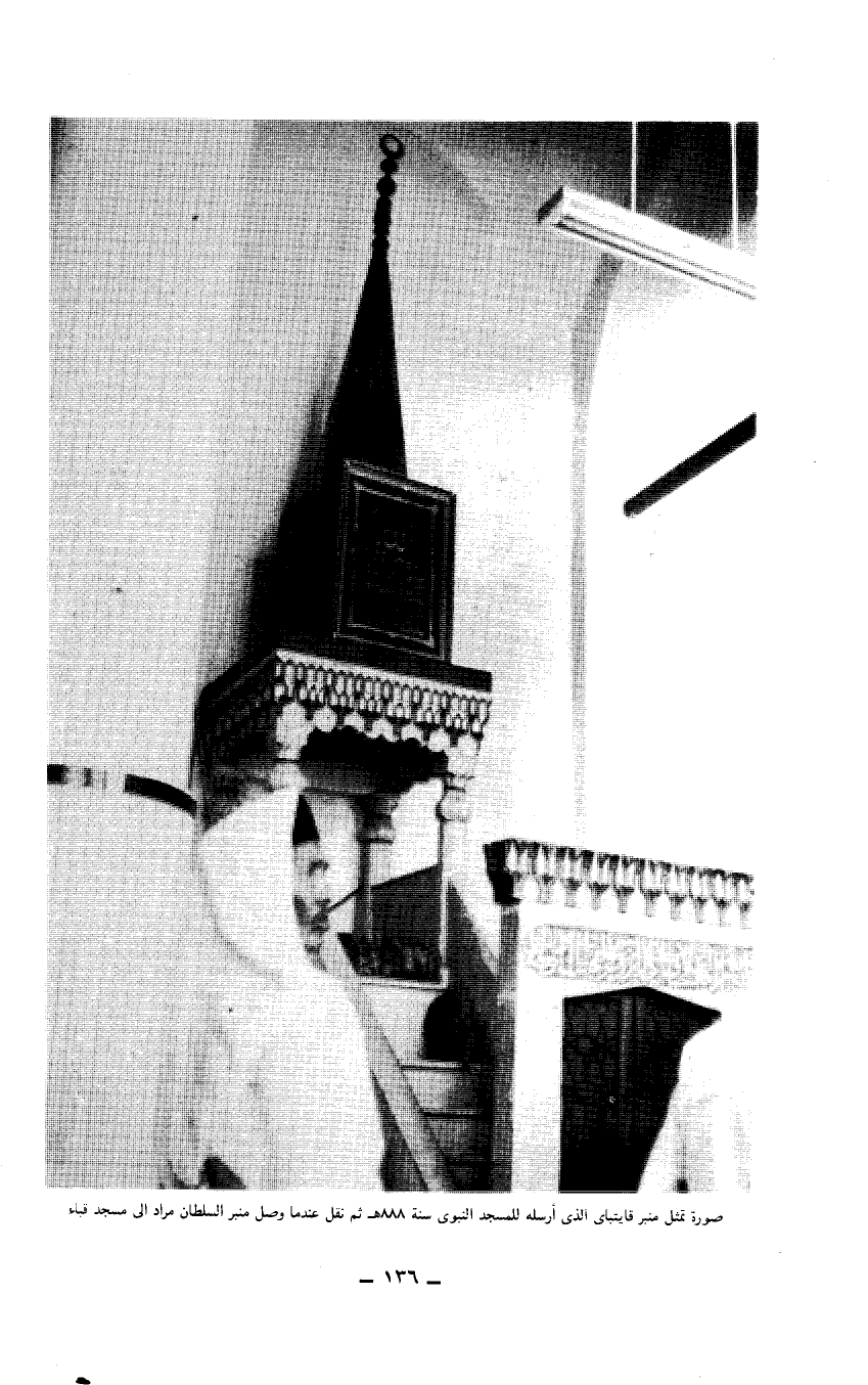 صورة تمثل منبر قايتباي الذي أرسله للمسجد النبوي سنة 888هـ ثم نقل عندما وصل منبر السلطان مراد إلى مسجد قباء…