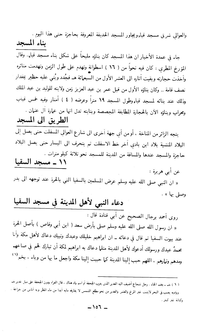 روى أحمد برجال الصحيح عن أبي قتادة قال: "أن رسول الله صلى الله عليه وسلم صلى بأرض سعد (ابن أبي وقاص) بأصل الحرة عند بيوت السقيا ثم قال في دعائه- أن إبراهيم خليلك وعبدك ونبيك دعاك لأهل مكة وأنا محمدٌ عبدك ورسولك أدعوك لأهل المدينة مثلما دعاك به إبراهيم لمكة أن تبارك لهم في صاعهم ومدهم وثمارهم، اللهم حبب إلينا المدينة كما حببت إلينا مكة واجعل ما بها من وباء، بخم (1)
