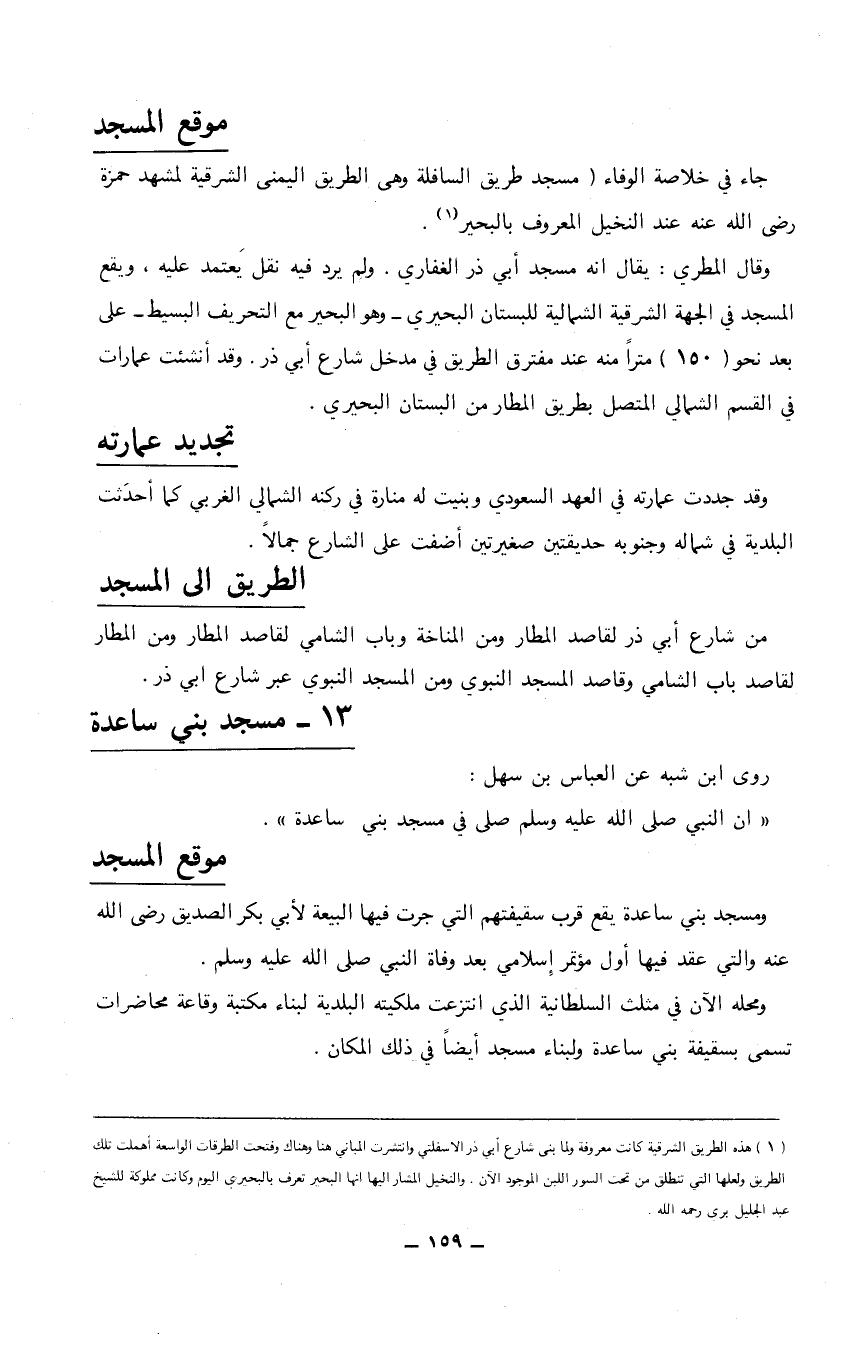 (1) هذه الطريق الشرقية كانت معروفة ولما بنى شارع أبي ذر الأسفلتي وانتشرت المباني هنا وهناك وفتحت الطرقات الواسعة أهملت تلك الطريق ولعلها التي تنطلق من تحت السور اللبن الموجود الآن. والنخيل المشار إليها أنها البحير تعرف بالبحيري اليوم وكانت مملوكة للشيخ عبد الجليل برى رحمه الله.
