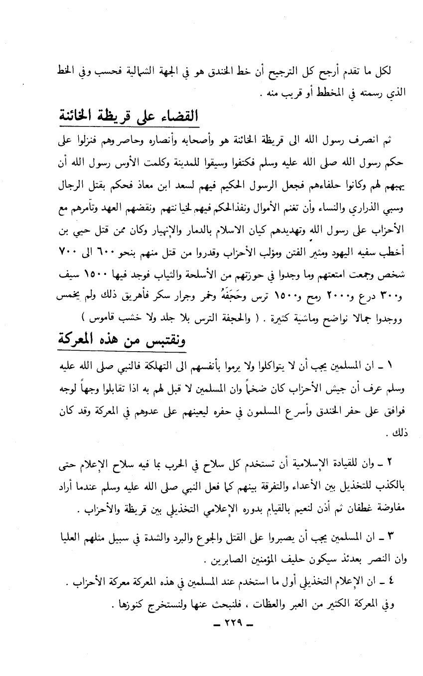 4 - أن الإعلام التخذيلي أول ما استخدم عند المسلمين في هذه المعركة معركة الأحزاب. وفي المعركة الكثير من العبر والعظات، فلنبحث عنها ولنستخرج كنوزها.…