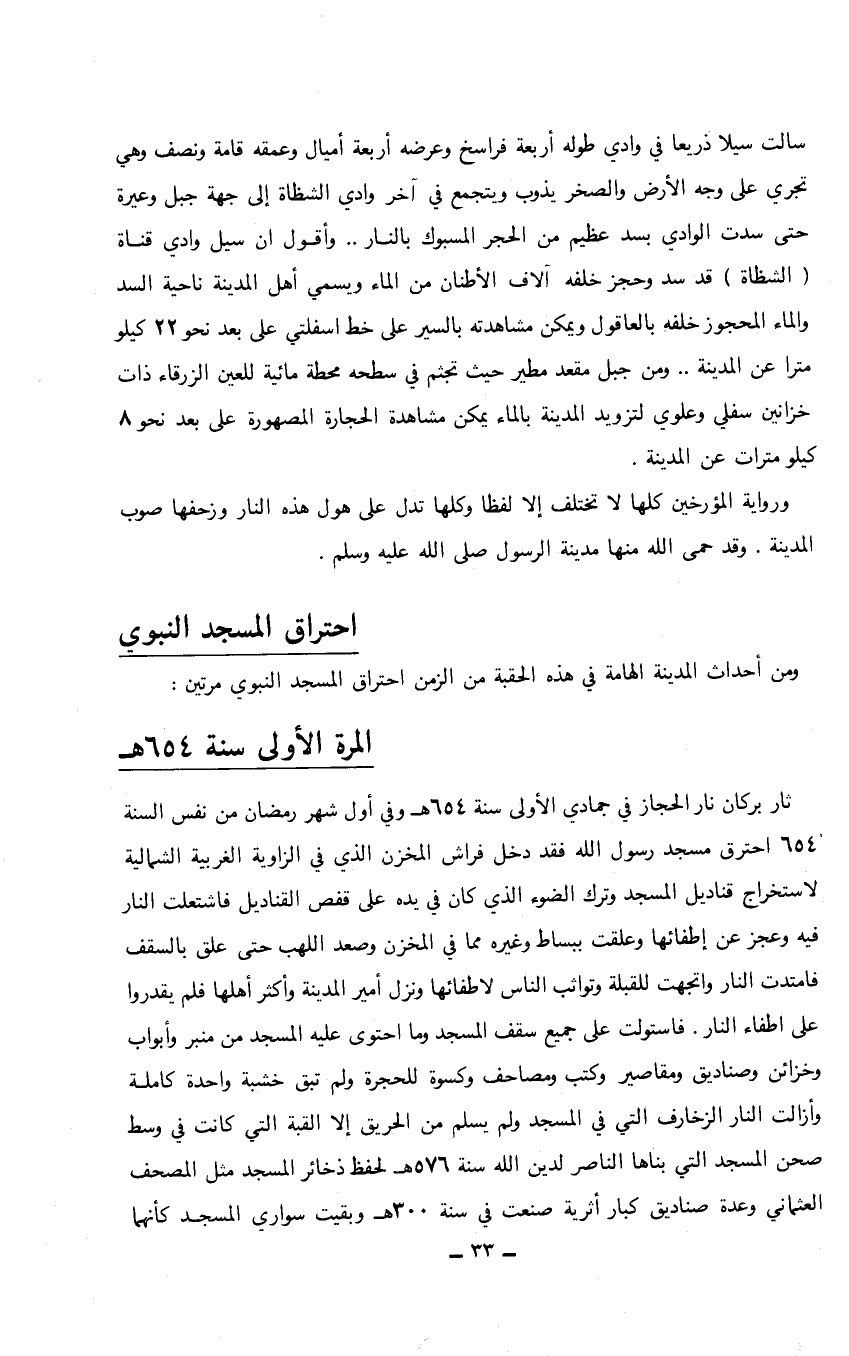 ورواية المؤرخين كلها لا تختلف إلا لفظا وكلها تدل على هول هذه النار وزحفها صوب المدينة. وقد حمى الله منها مدينة الرسول صلى الله عليه وسلم.
