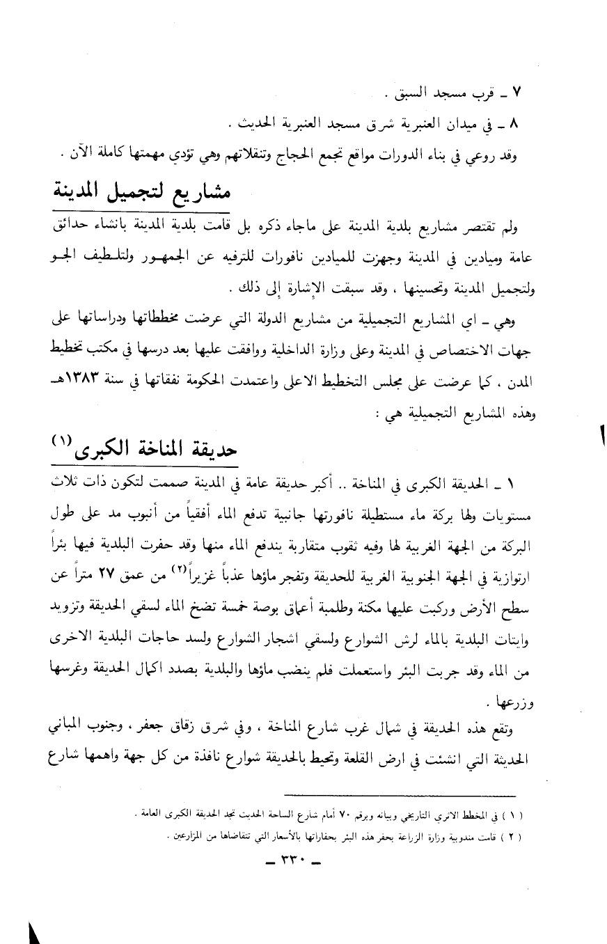 (1) في المخطط الأثري التاريخي وبيانه وبرقم 70 أمام شارع الساحة الحديث تجد الحديقة الكبرى العامة. (2) قامنت مندوبية وزارة الزراعة بحفر هذه البئر بحفاراتها بالأسعار التي تتقاضاها من المزارعين