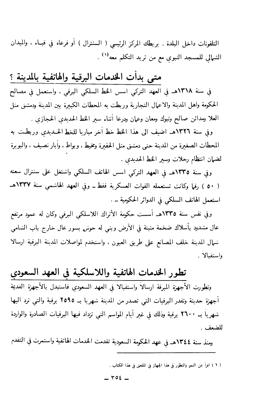 التلفونات داخل البلدة. يربطك المركز الرئيسي (السنترال) أو فرعاه في قباء، والميدان الشمالي للمسجد النبوي مع من تريد التكليم معه (1).