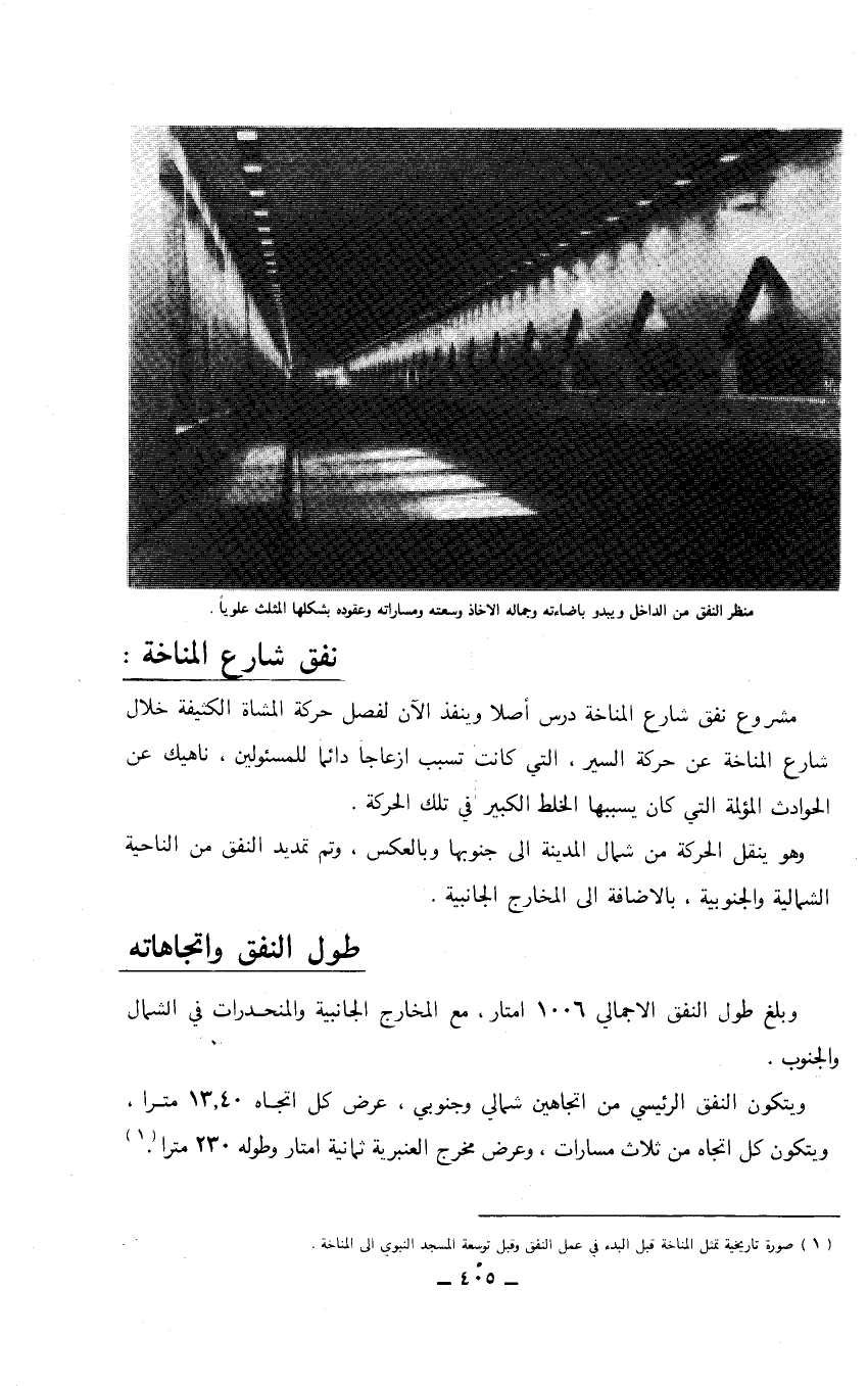 ((منظر النفق من الداخل ويبدو باضاءته وجماله الأخاذ وسعته ومساراته وعقوده بشكلها المثلث علوياً)).