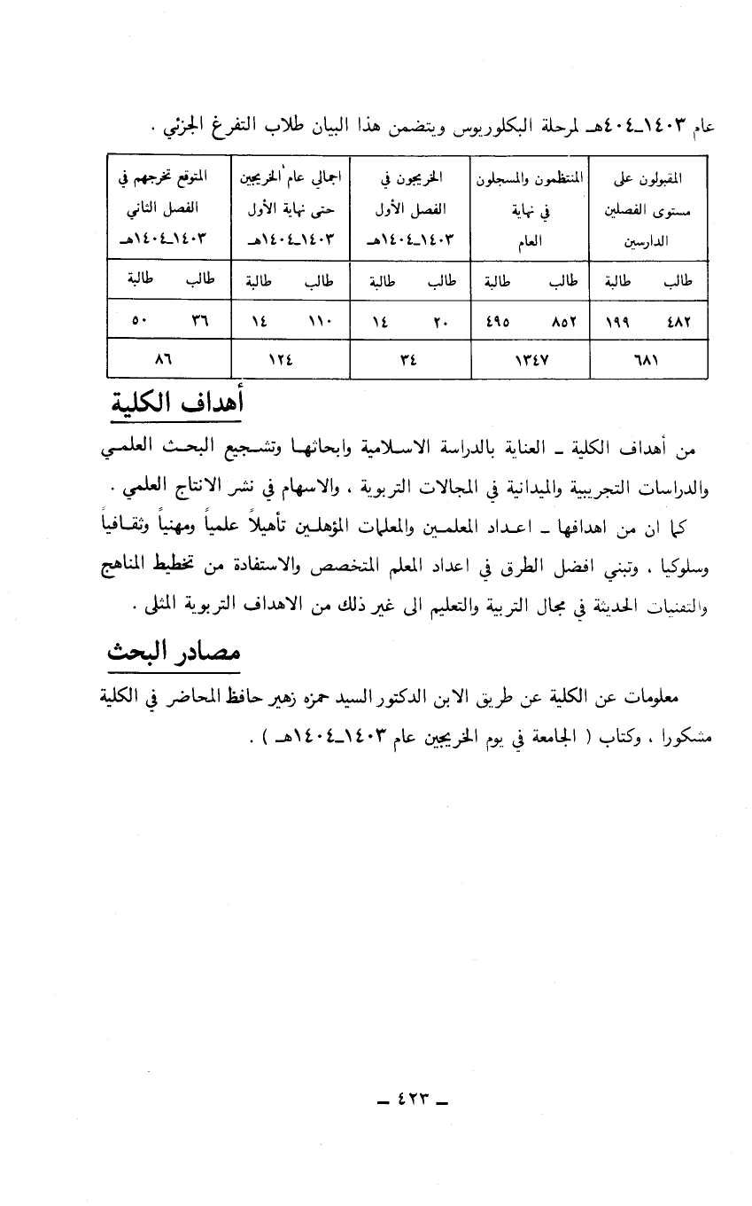 عام 1403 - 1404هـ لمرحلة البكالوريوس ويتضمن هذا البيان طلاب التفرغ الجزئي.