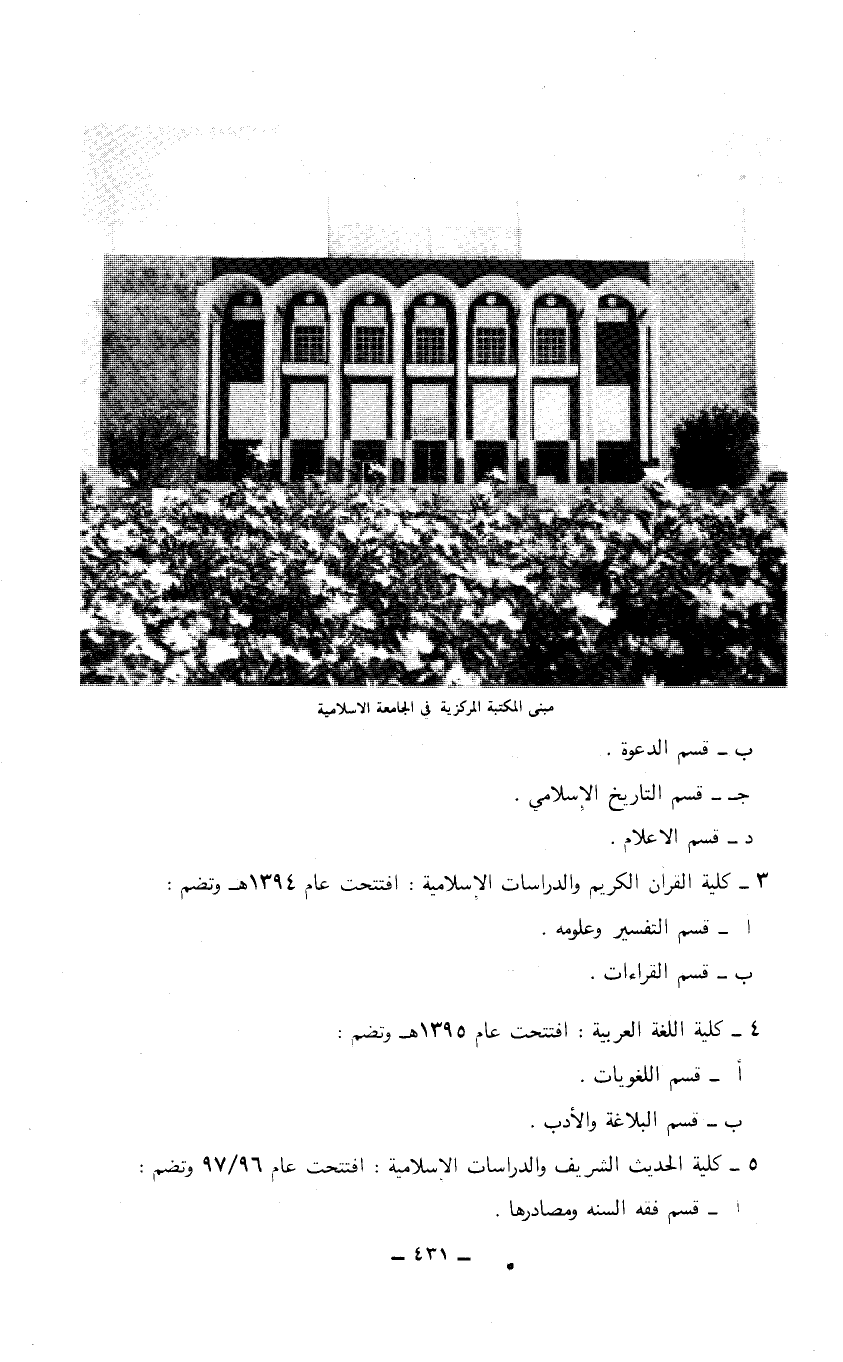 ب- قسم الدعوة جـ- قسم التاريخ الإسلامي د- قسم الإعلام 3 - كلية القرآن الكريم والدراسات الإسلامية: افتتحت عام 1394هـ وتضم: أ- قسم التفسير وعلومه. ب- قسم القراءات. 4 - كلية اللغة العربية: افتتحت عام 1395هـ وتضم: أ- قسم اللغويات. ب- قسم البلاغة والأدب. 5 - كلية الحديث الشريف والدراسات الاسلامية: افتتحت عام 96/ 97 وتضم: أ- قسم فقه السنة ومصادرها…