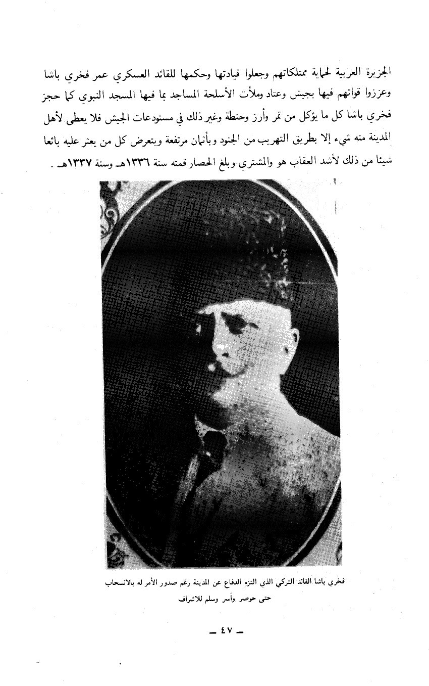 ((فخري باشا القائد التركي الذي التزم الدفاع عن المدينة رغم صدور الأمر له بالانسجاب حتى حوصر وأسر وسلم للاشراف)) …