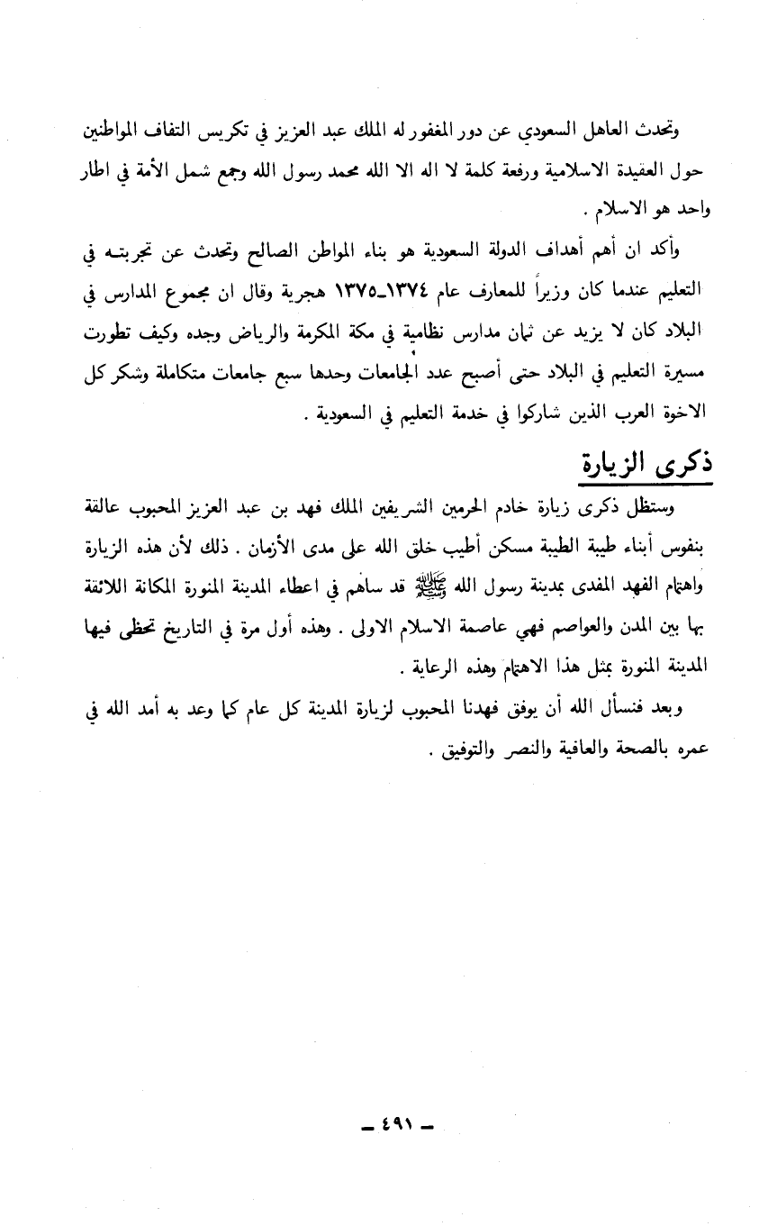 وبعد فنسأل الله أن يوفق فهدنا المحبوب لزيارة المدينة كل عام كما وعد به أمد الله في عمره بالصحة والعافية والنصر والتوفيق.…