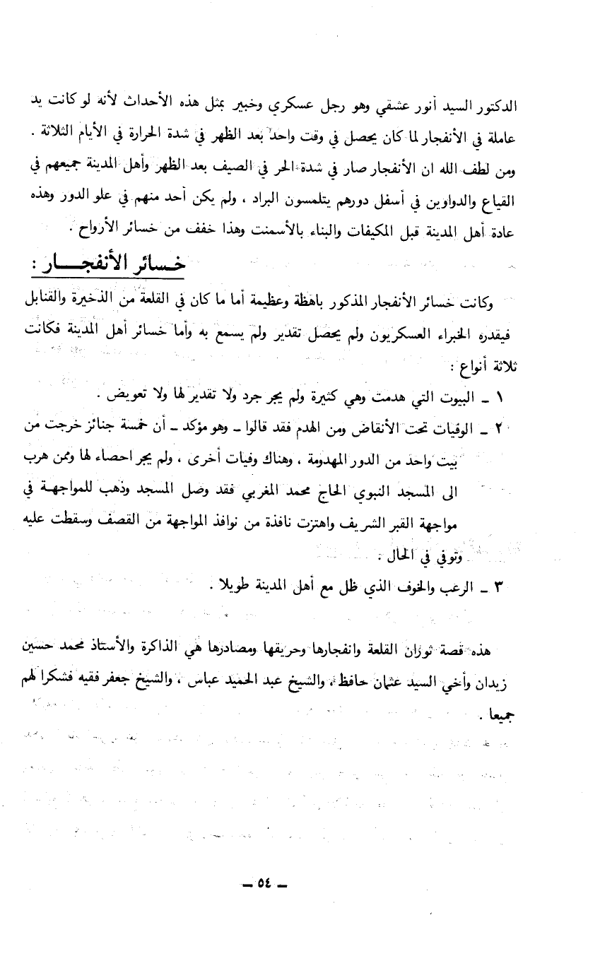 هذه قصة ثوران القلعة وانفجارها وحريقها ومصادرها هي الذاكرة والأستاذ محمد حسين زيدان وأخي السيد عثمان حافظ، والشيخ عبدالحميد عباس، والشيخ جعفر فقيه فشكرا لهم جميعاً.…