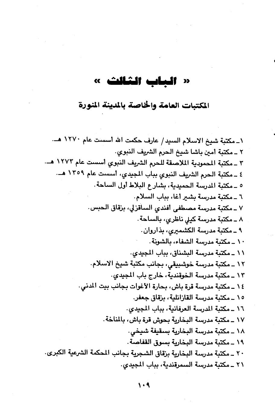 1 - مكتبة شيخ الاسلام السيد / عارف حكمت الله اسست عام 1270 هـ.
