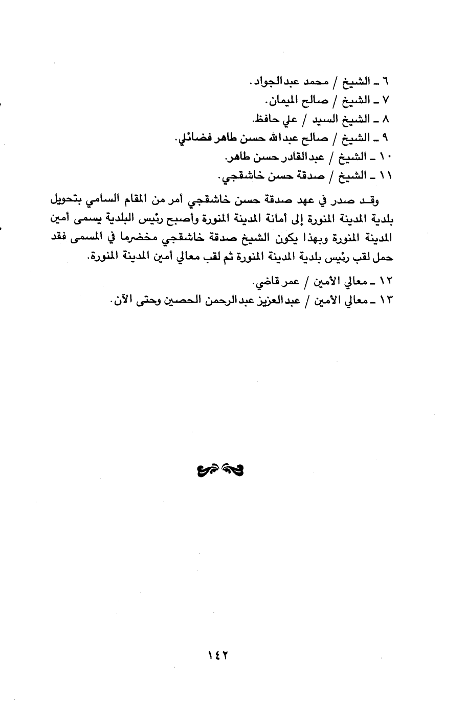 6 - الشيخ / محمد عبد الجواد. 7 - الشيخ / صالح الميمان. 8 - الشيخ السيد / علي حافظ. 9 - الشيخ / صالح عبد الله حسن طاهر فضائلي. 10 - الشيخ / عبد القادر حسن طاهر. 11 - الشيخ / صدقة حسن خاشقجي.