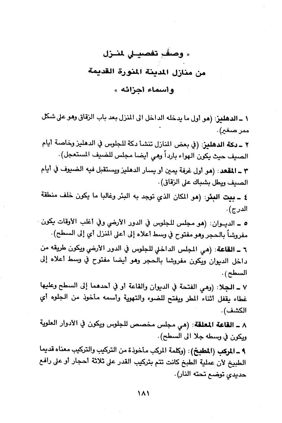 من منازل المدينة المنورة القديمة وأسماء أجزائه))