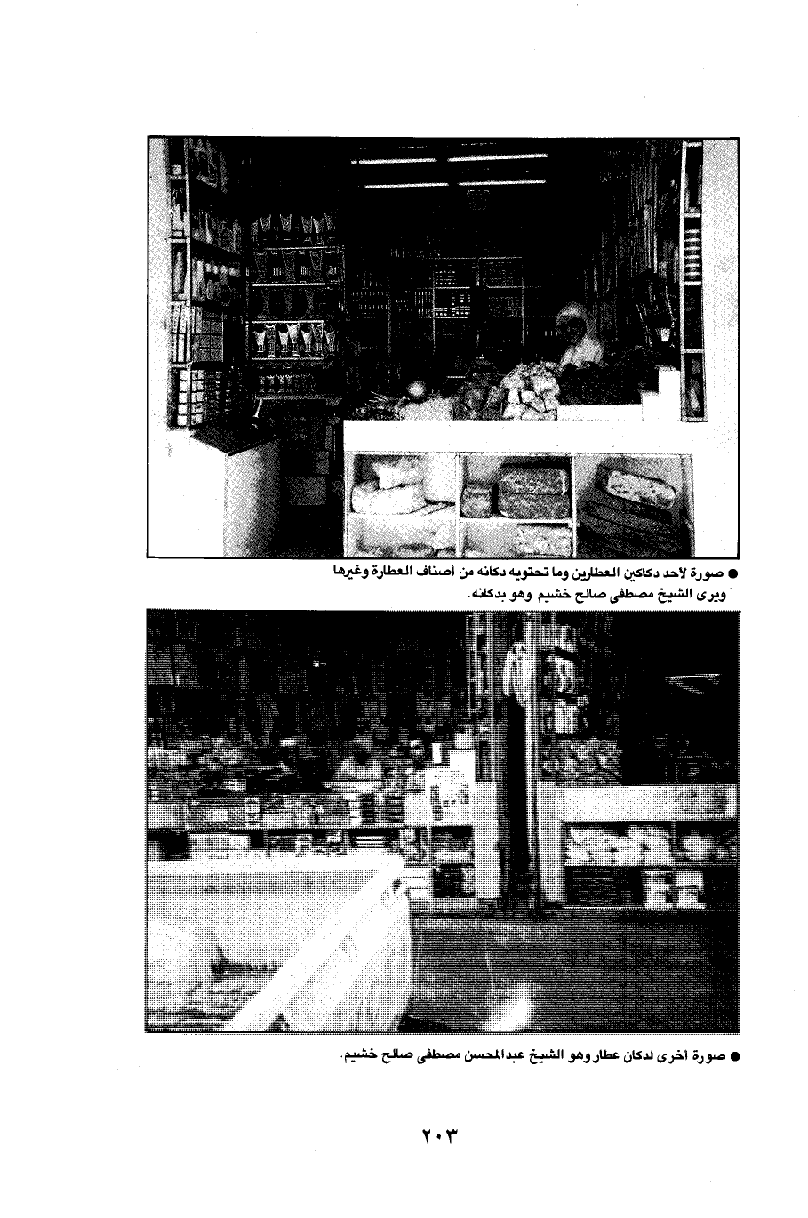 صورة لاحد دكاكين العطارين وما تحتويه دكانه من اصناف العطارة وغيرها ويرى الشيخ مصطفى صالح خشيم وهو بدكانه.