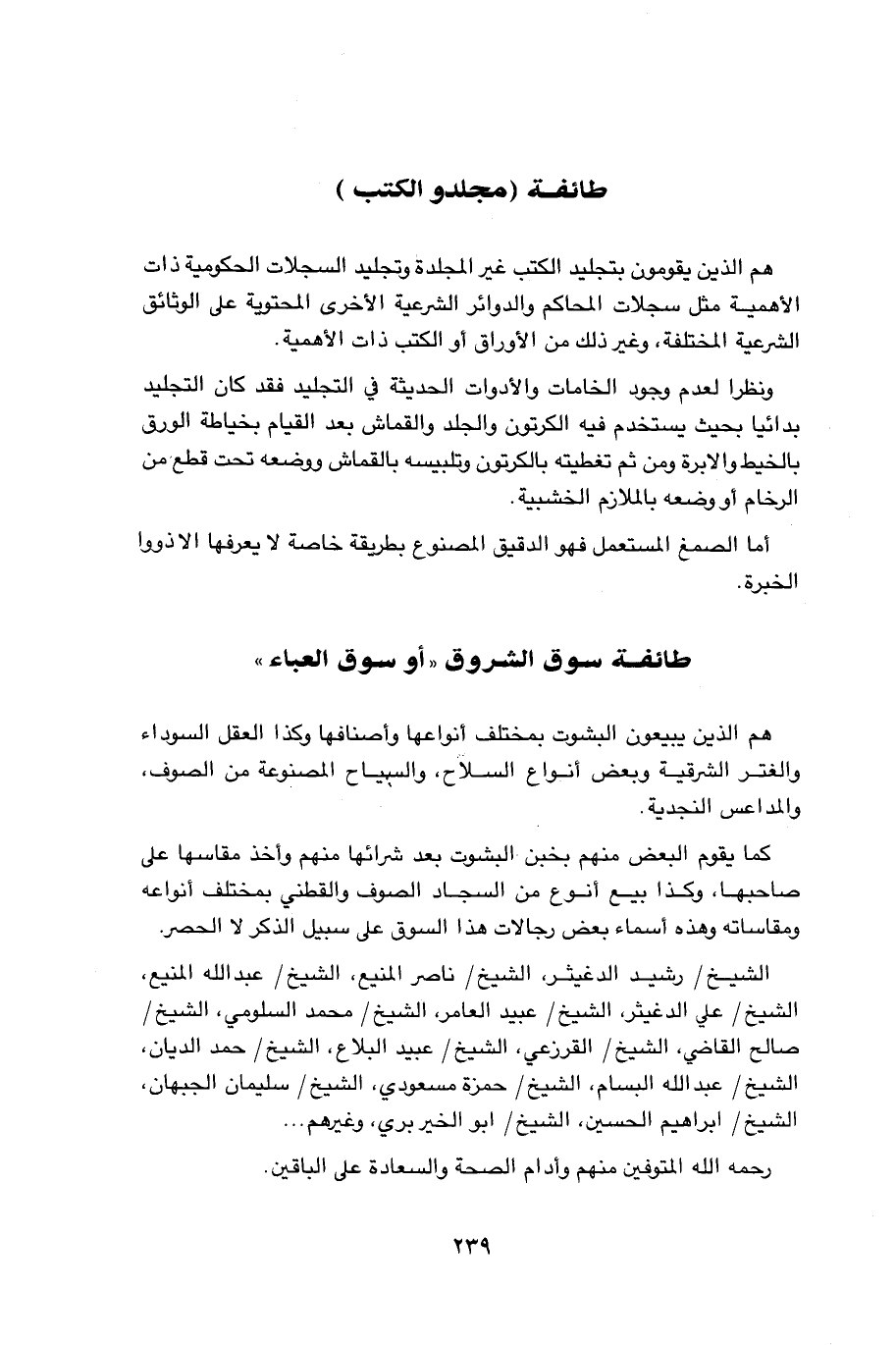 هم الذين يقومون بتجليد الكتب غير المجلدة وتجليد السجلات الحكومية ذات الأهمية مثل سجلات المحاكم والدوائر الشرعية الاخرى المحتوية على الوثائق الشرعية المختلفة، وغير ذلك من الأوراق او الكتب ذات الأهمية. ونظرا لعدم وجود الخامات والادوات الحديثة في التجليد فقد كان التجليد بدائيا بحيث يستخدم فيه الكرتون والجلد والقماش بعد القيام بخياطة الورق بالخيط والابرة ومن ثم تغطيته بالكرتون وتلبيسه بالقماش ووضعه تحت قطع من الرخام أو وضعه بالملازم الخشبية. أما الصمغ المستعمل فهو الدقيق المصنوع بطريقة خاصة لا يعرفها الا ذووا الخبرة.
