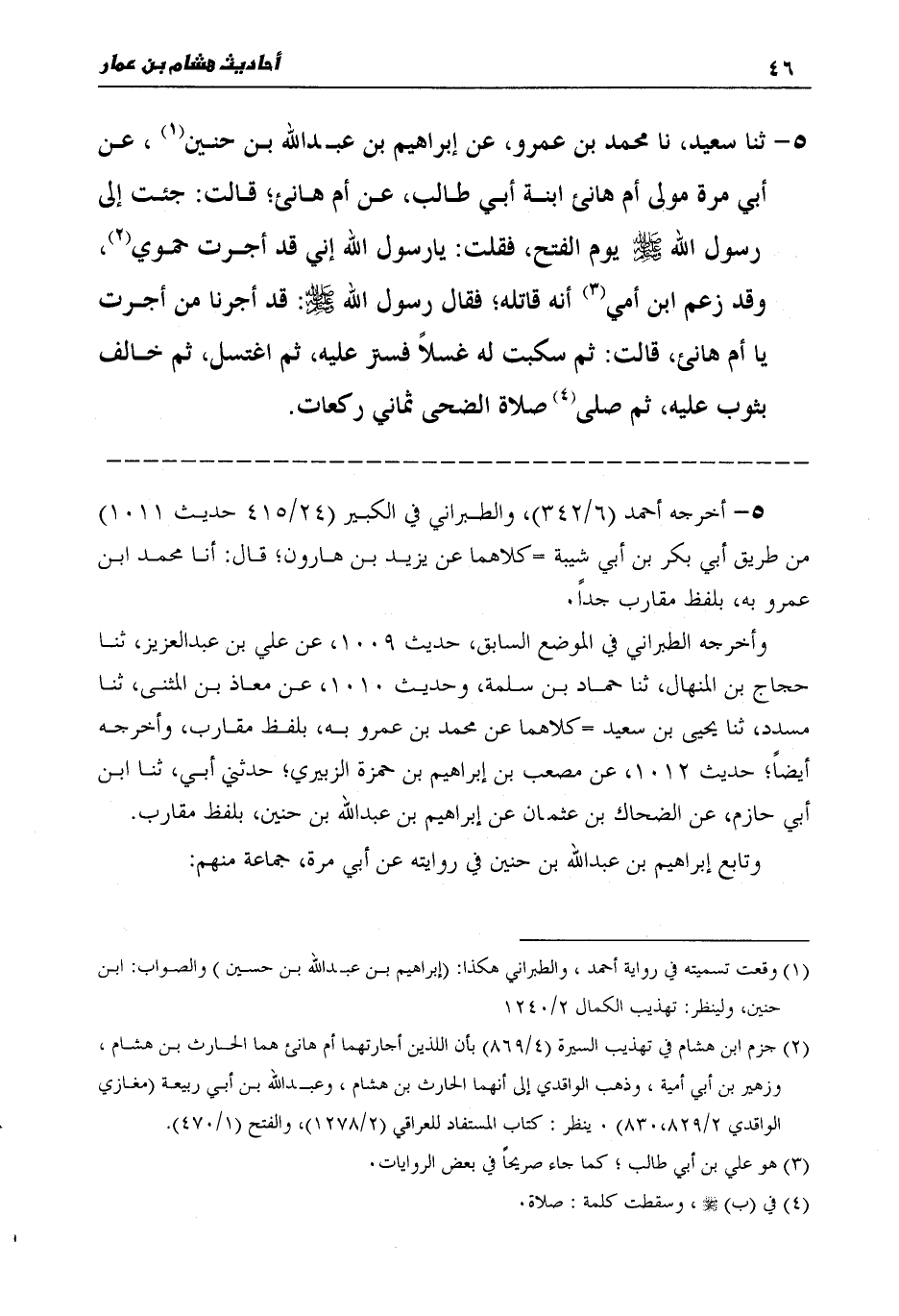 5 - ثنا سَعِيدٌ، نا مُحَمَّدُ بْنُ عَمْرٍو، عَنْ إِبْرَاهِيمَ بْنِ عَبْدِ اللَّهِ بْنِ حُنَيْنٍ، عَنْ أَبِي مُرَّةَ، مَوْلَى أُمِّ هَانِئٍ ابْنَةِ أَبِي طَالِبٍ، عَنْ أُمِّ هَانِئٍ قَالَتْ: جِئْتُ إِلَى رَسُولِ اللَّهِ صَلَّى اللهُ عَلَيْهِ وَسَلَّمَ يَوْمَ الْفَتْحِ فَقُلْتُ: يَا رَسُولَ اللَّهِ، إِنِّي قَدْ أَجَرْتُ حَمَوَيَّ، وَقَدْ زَعَمَ ابْنُ أُمِّي أَنَّهُ قَاتِلُهُ، فَقَالَ رَسُولُ اللَّهِ صَلَّى اللهُ عَلَيْهِ وَسَلَّمَ: " §قَدْ أَجَرْنَا مَنْ أَجَرْتِ يَا أُمَّ هَانِئٍ، قَالَتْ: ثُمَّ سَكَبْتُ لَهُ غُسْلًا فَسُتِرَ عَلَيْهِ، ثُمَّ اغْتَسَلَ، ثُمَّ خَالَفَ بِثَوْبٍ عَلَيْهِ، ثُمَّ صَلَّى صَلَاةَ الضُّحَى ثَمَانِيَ رَكَعَاتٍ "