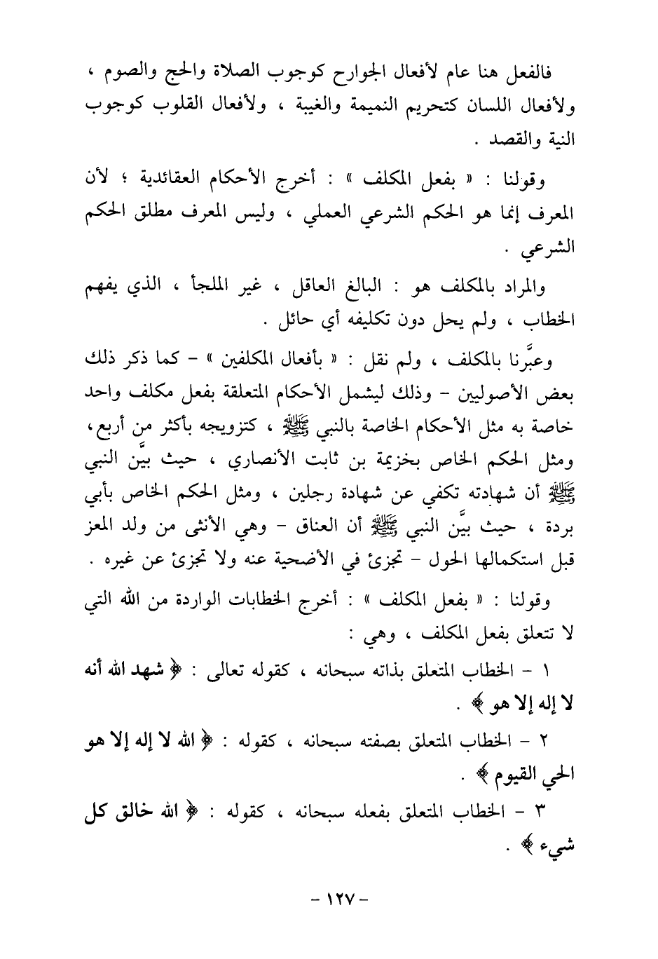 وعبَّرنا بالمكلف، ولم نقل: " بأفعال المكلفين " - كما ذكر ذلك