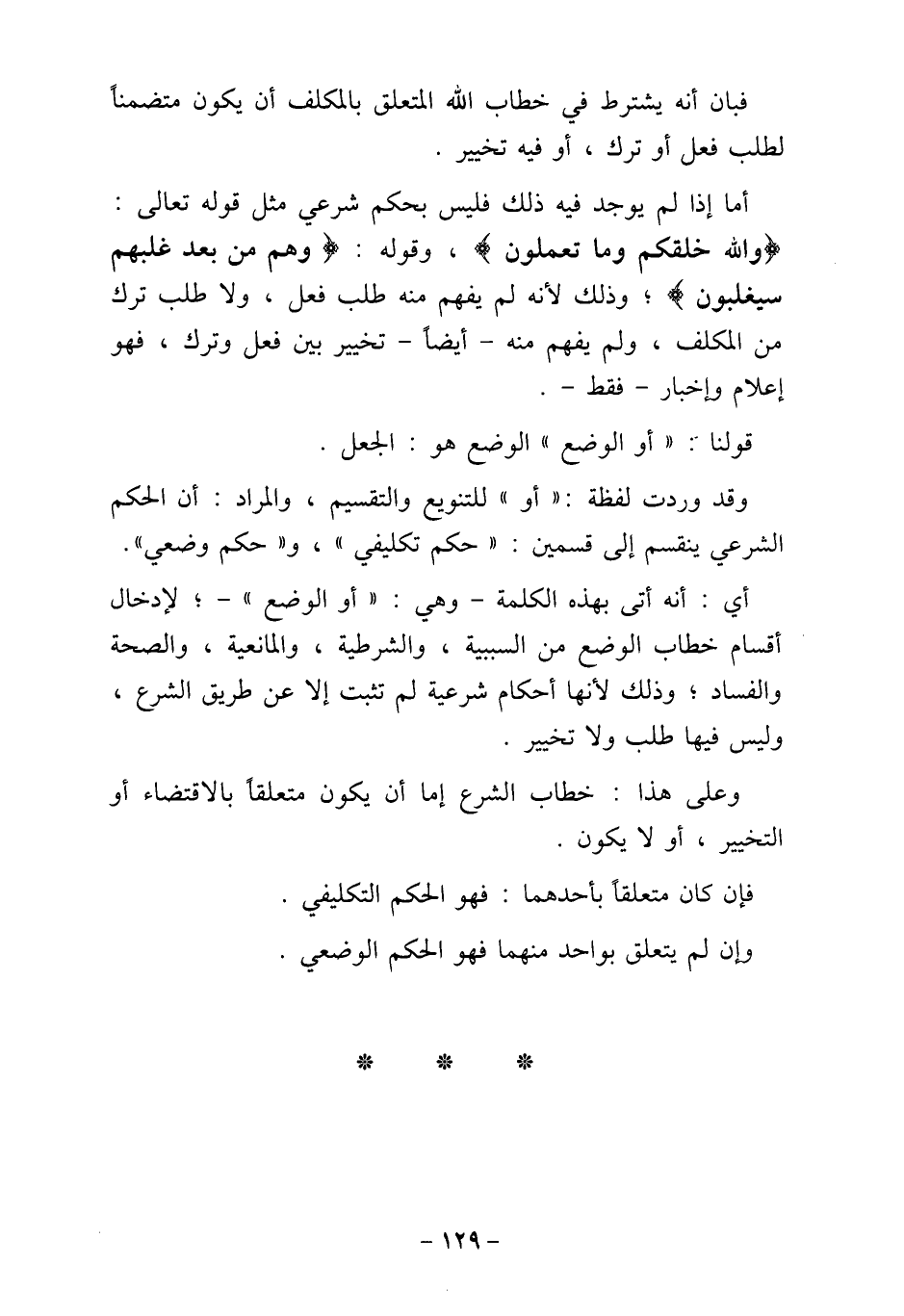 أما إذا لم يوجد فيه ذلك فليس بحكم شرعي مثل قوله تعالى: