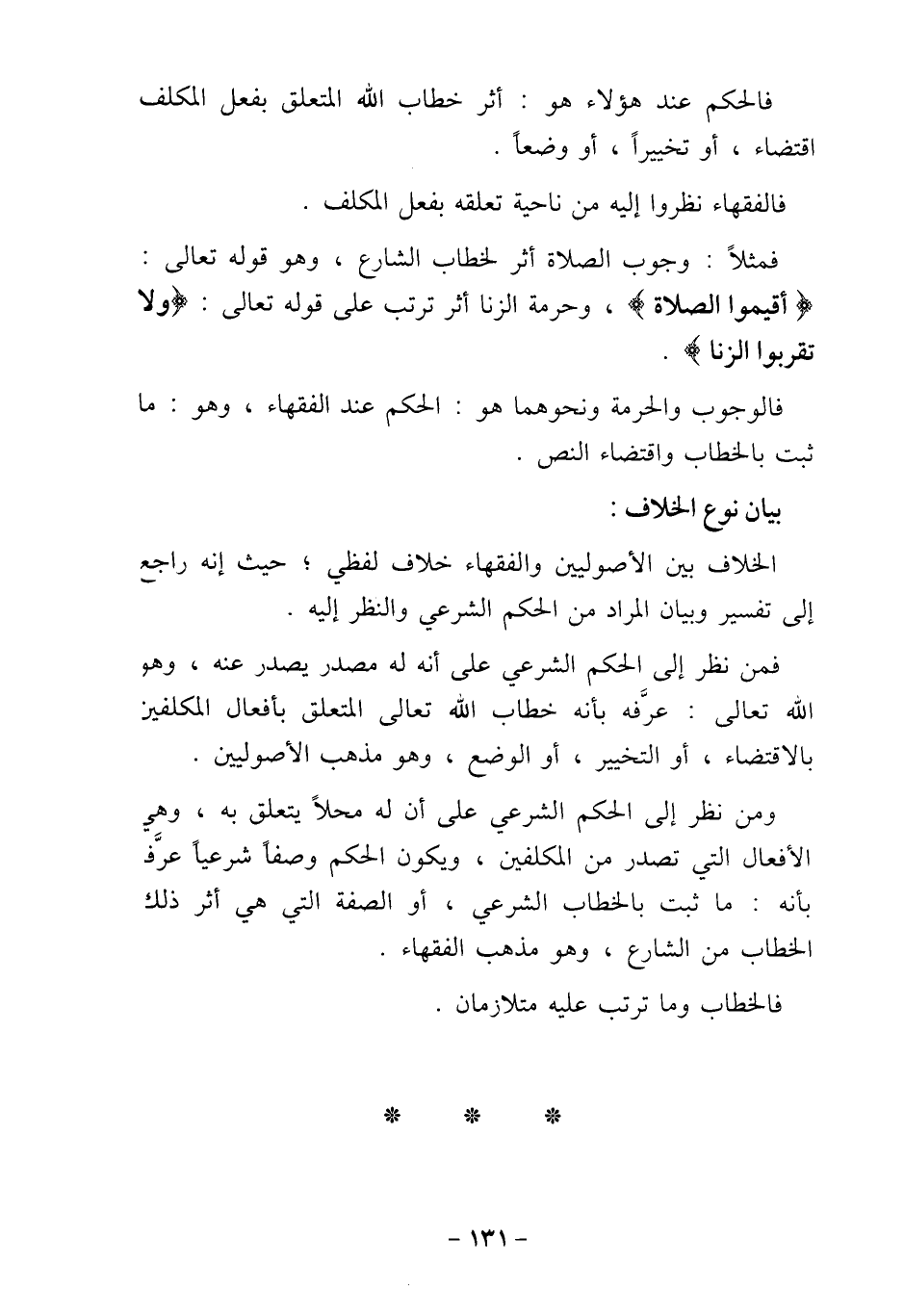 الله تعالى: عرَّفه بأنه خطاب اللَّه تعالى المتعلق بأفعال المكلفين