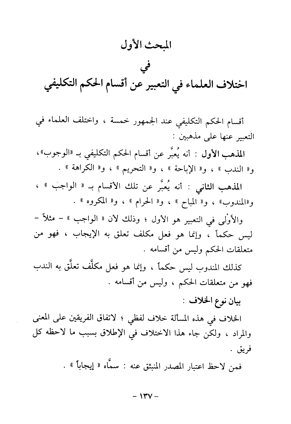 المبحث الأول في اختلاف العلماء في التعبير عن أقسام الحكم التكليفي