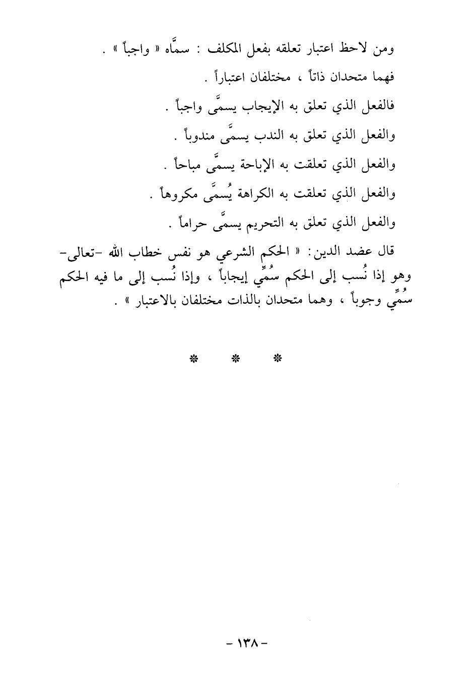 قال عضد الدين: " الحكم الشرعي هو نفس خطاب اللَّه - تعالى -