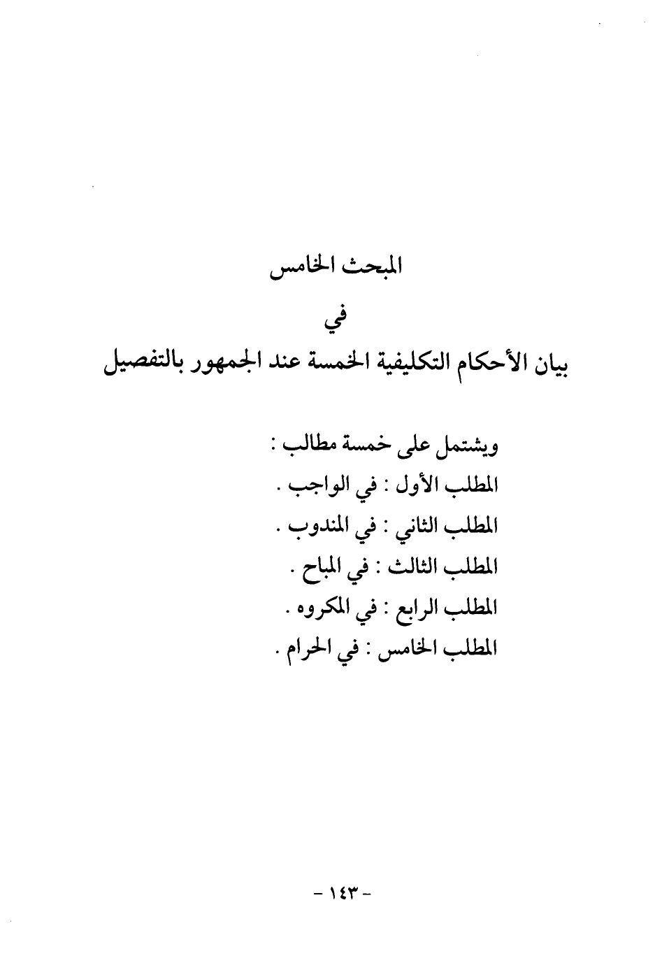 المبحث الخامس في بيان الأحكام التكليفية الخمسة عند الجمهور بالتفصيل