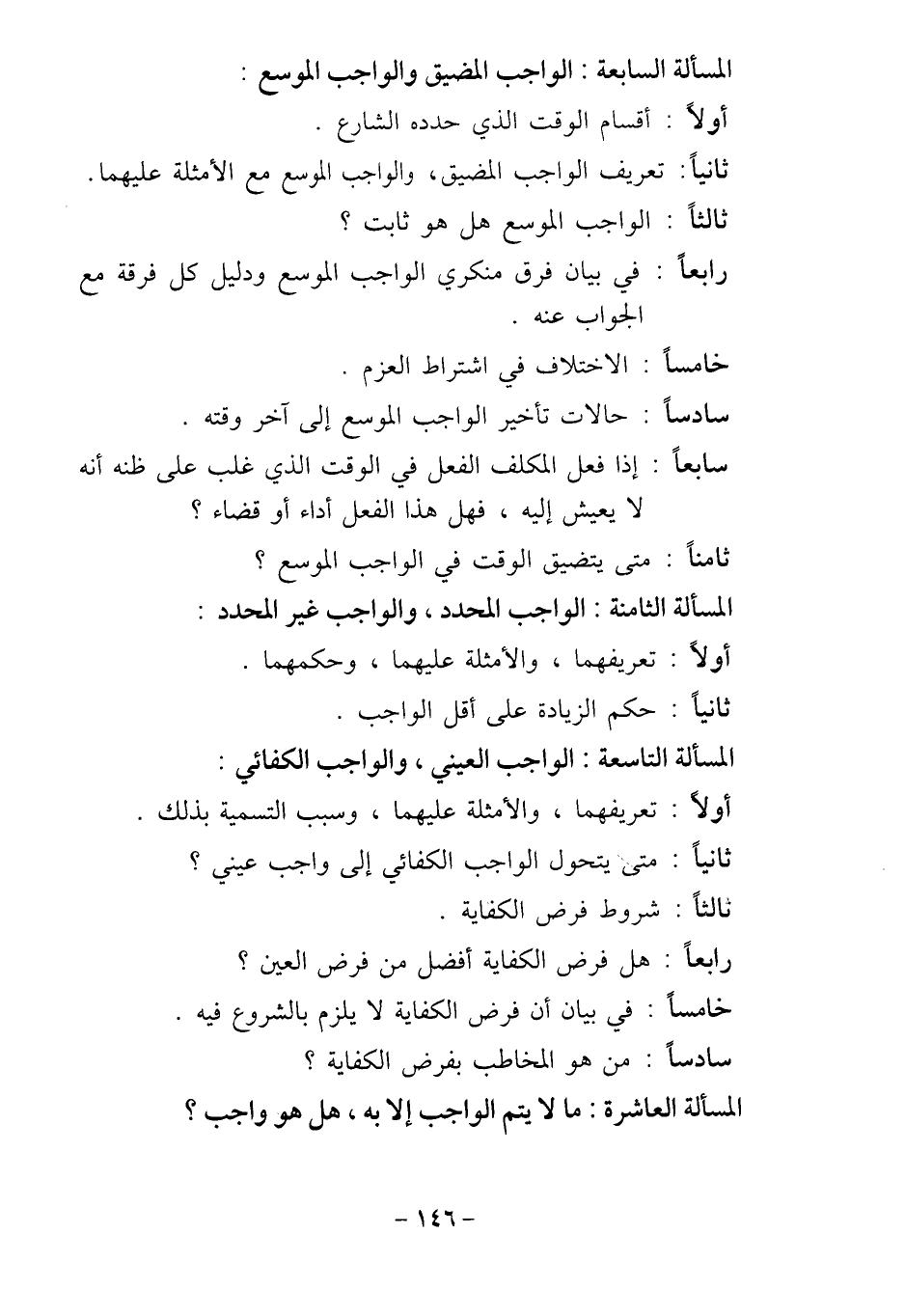 المسألة الثامنة: الواجب المحدد، والواجب غير المحدد: