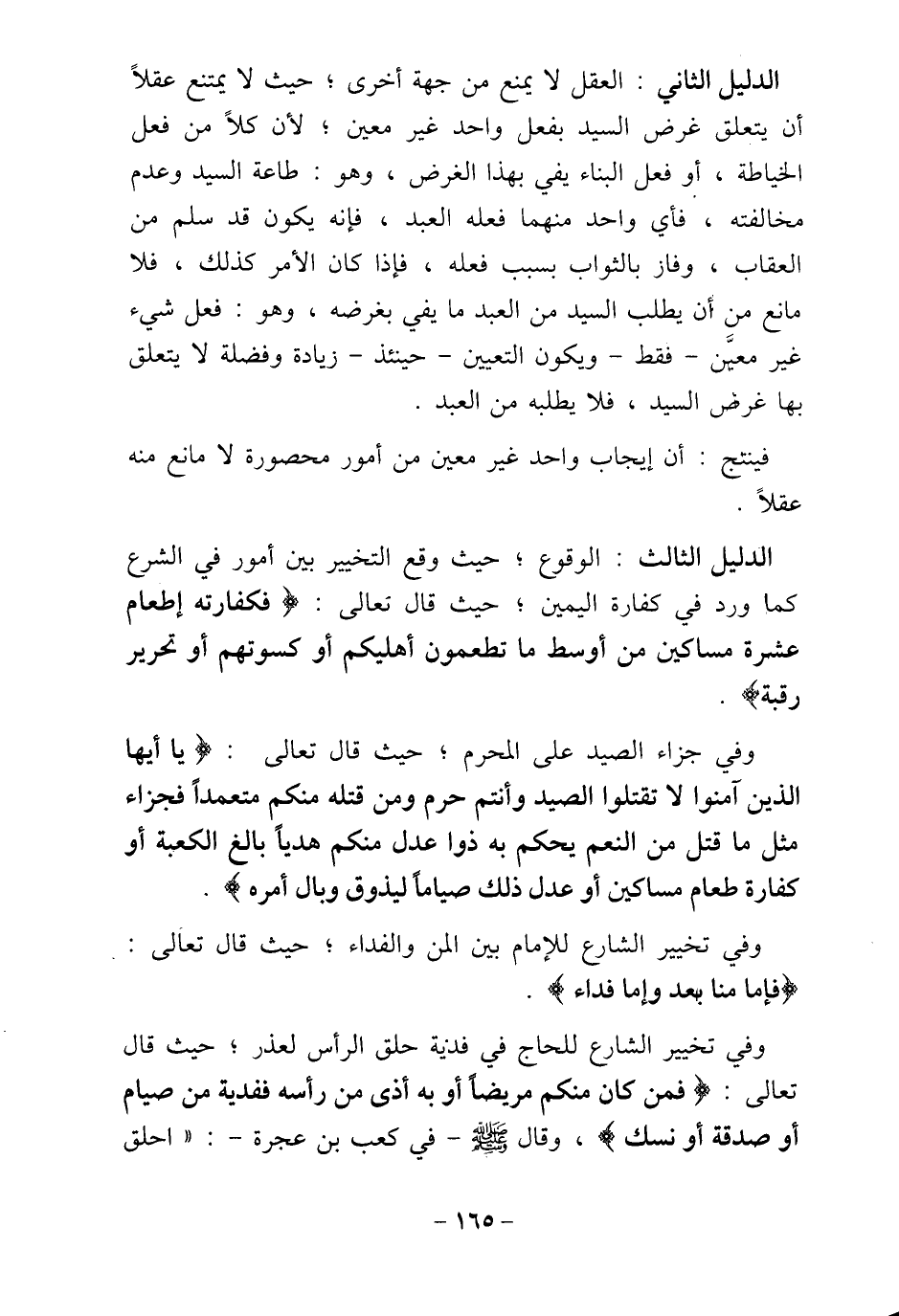 تعالى: (فَمَنْ كَانَ مِنْكُمْ مَرِيضًا أَوْ بِهِ أَذًى مِنْ رَأْسِهِ فَفِدْيَةٌ مِنْ صِيَامٍ أَوْ صَدَقَةٍ أَوْ نُسُكٍ) ، وقال - صلى الله عليه وسلم - في كعب بن عجرة -:
