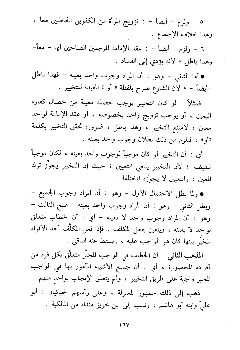 "أو"، فيلزم من ذلك بطلان وجوب واحد بعينه.