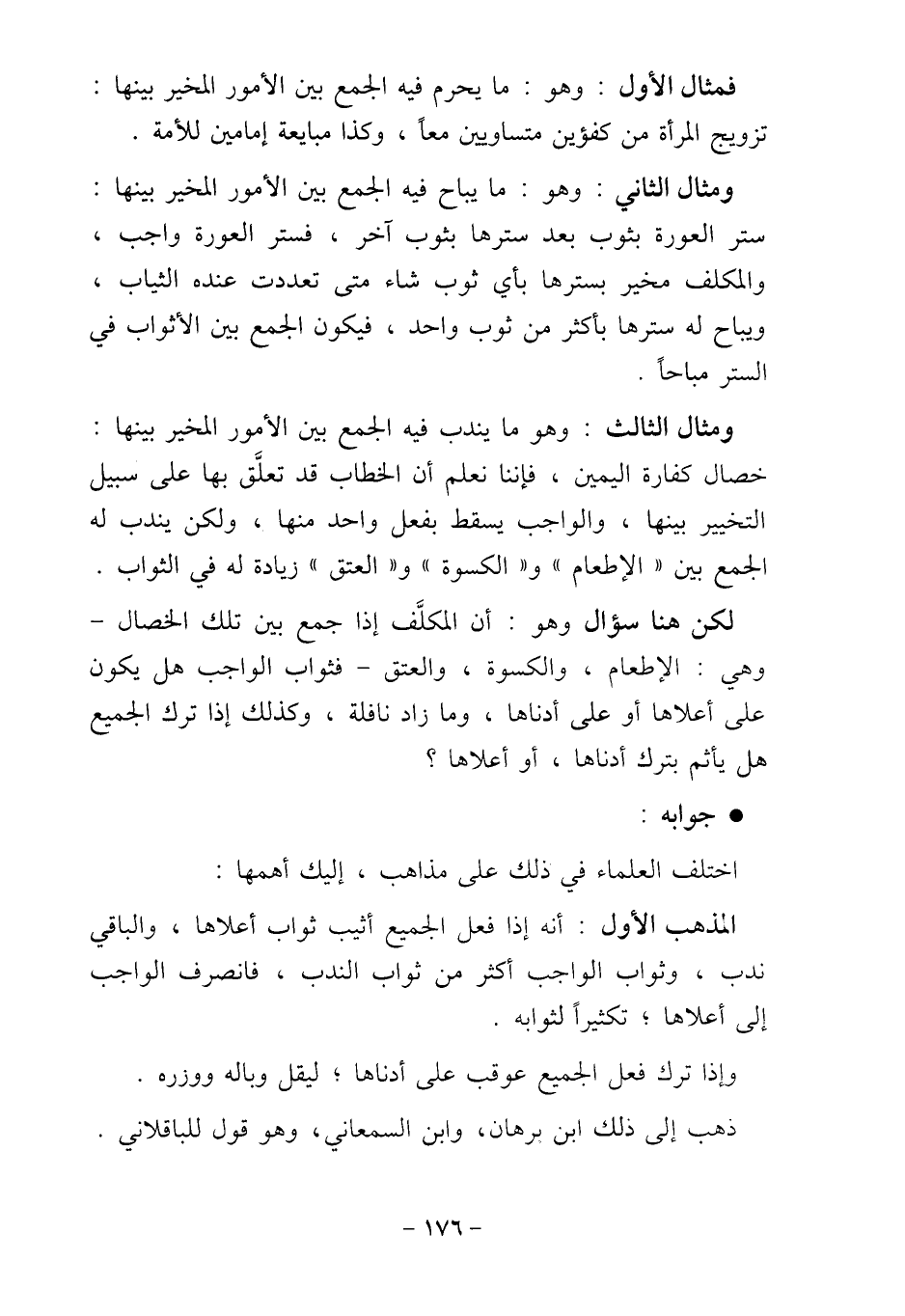 ومثال الثاني: وهو: ما يباح فيه الجمع بين الأمور المخير بينها: