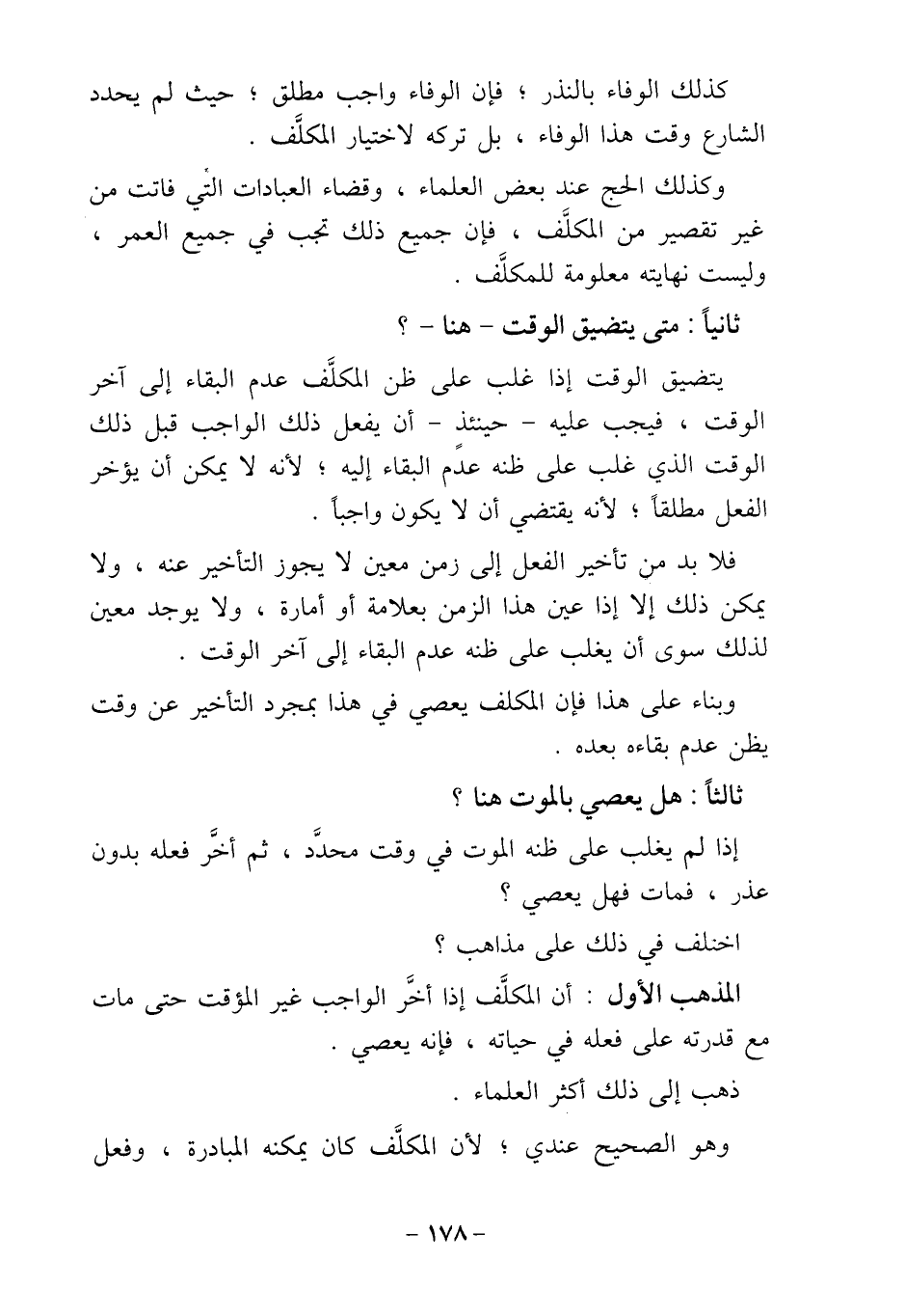 الشارع وقت هذا الوفاء، بل تركه لاختيار المكلََّف.