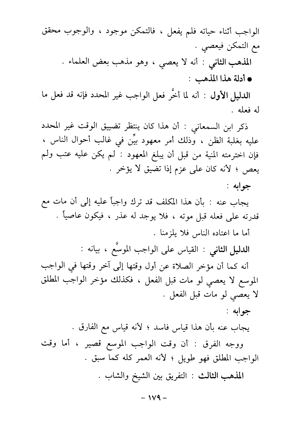 ذكر ابن السمعاني: أن هذا كان ينتظر تضييق الوقت غير المحدد