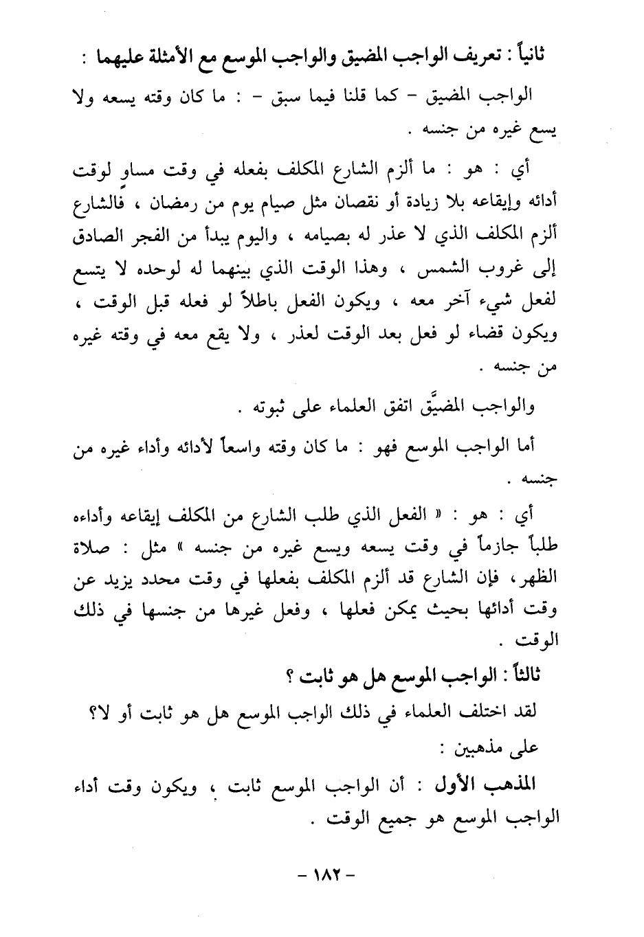 ثانياً: تعريف الواجب المضيق والواجب الموسع مع الأمثلة عليهما: