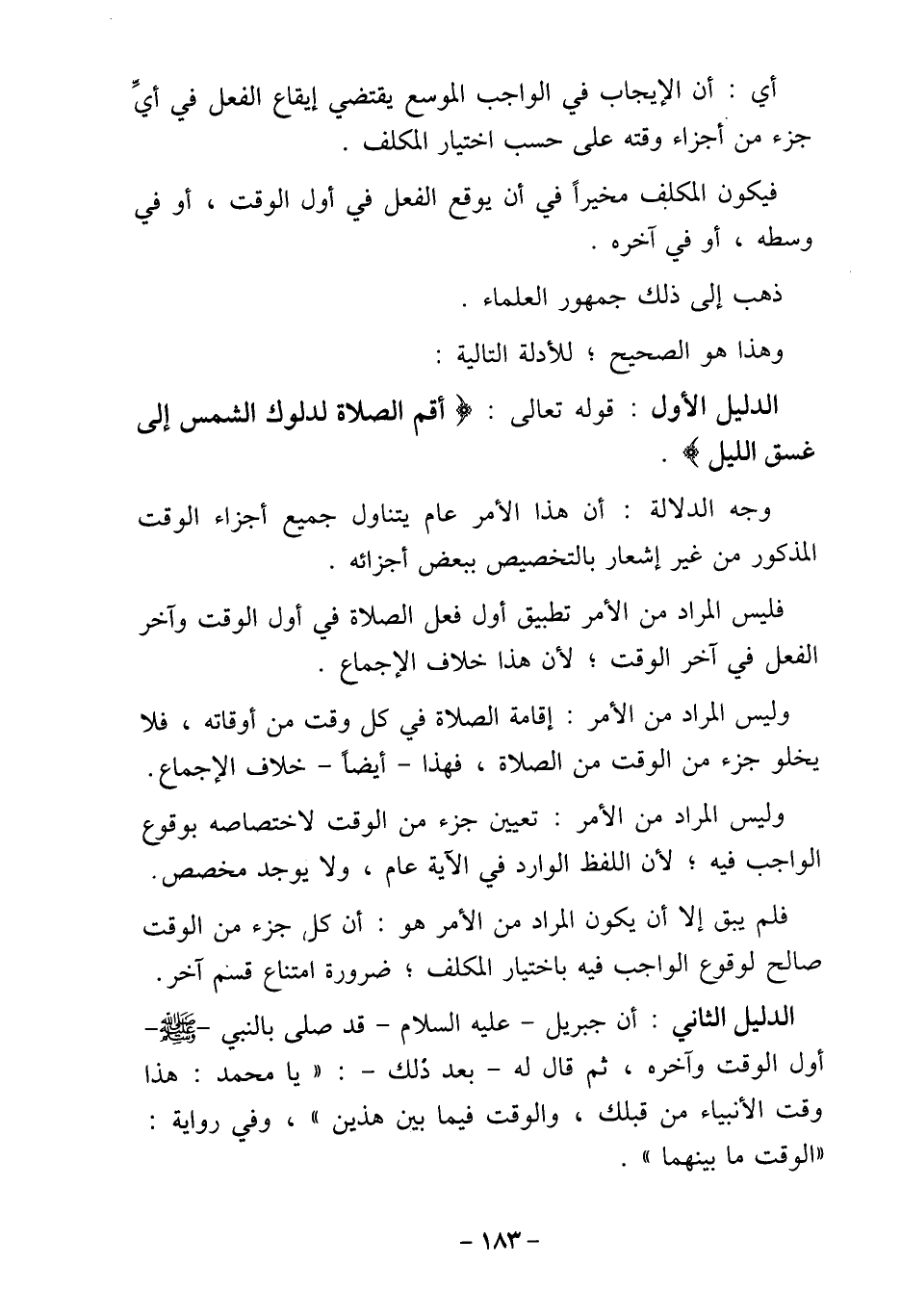 الدليل الثاني: أن جبريل - عليه السلام - قد صلى بالنبي - صلى الله عليه وسلم - أول الوقت وآخره، ثم قال له - بعد ذلك -: " يا محمد: هذا
