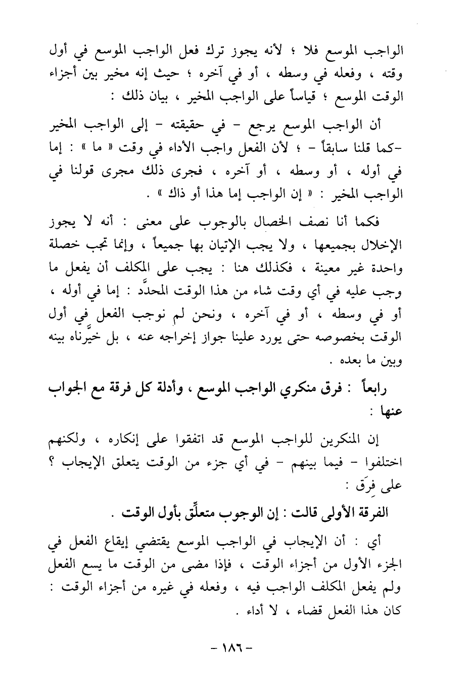- كما قلنا سابقاً -، لأن الفعل واجب الأداء في وقت " ما ": إما