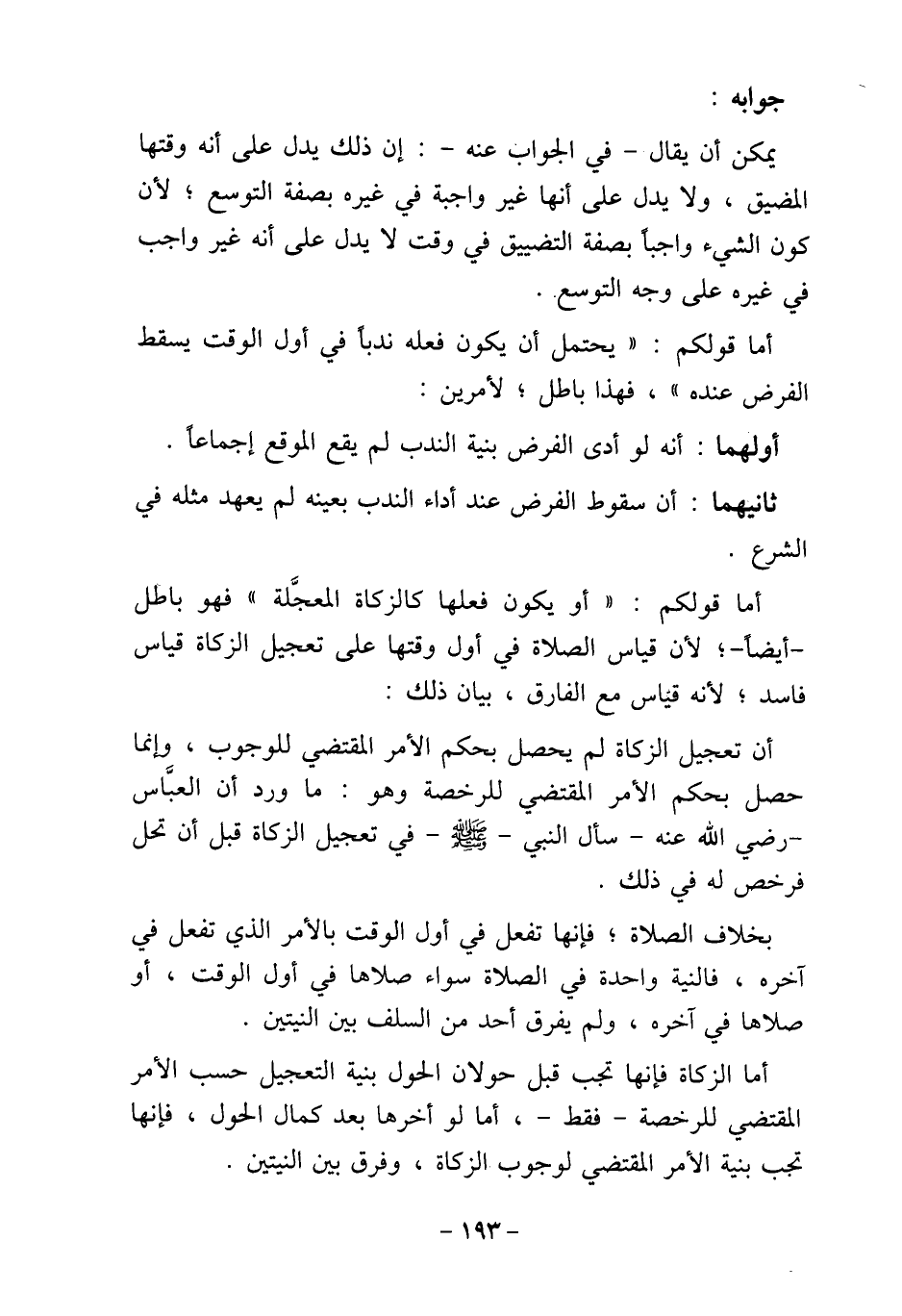 - أيضا -؛ لأن قياس الصلاة في أول وقتها على تعجيل الزكاة قياس