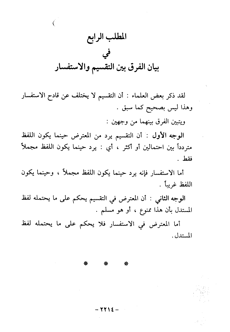 المطلب الرابع في بيان الفرق بين التقسيم والاستفسار