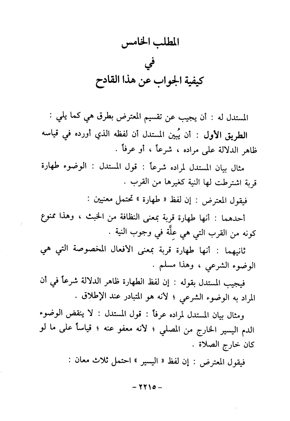 المطلب الخامس في كيفية الجواب عن هذا القادح